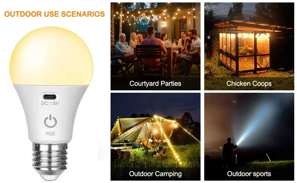 1/2/3PC Rechargeable Light Bulb RGB color USB Led Bulb Smart Bulb Dimmable E27 Bulb with Timing Cordless Battery Operated Light