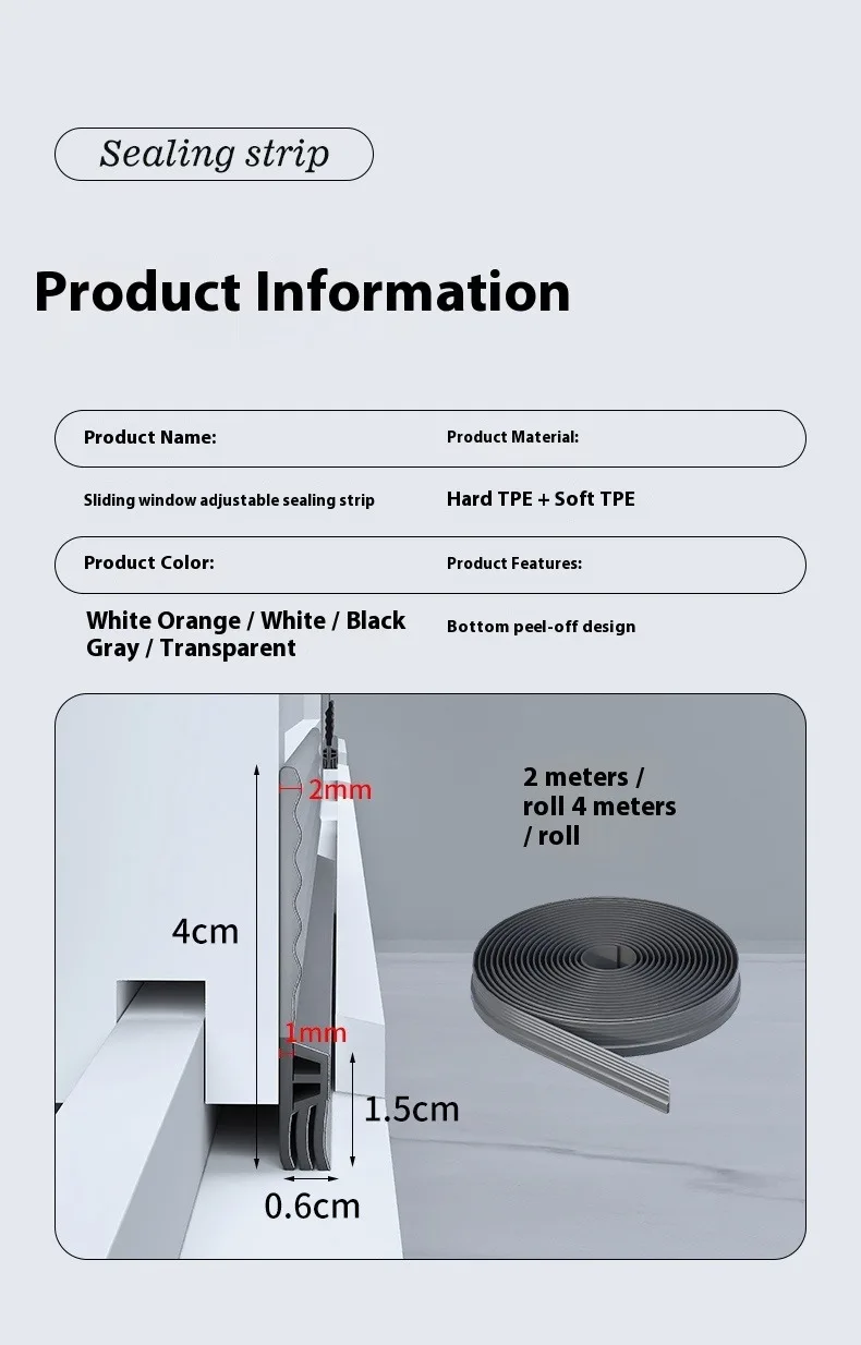 - Size: 2/4M TPE Sliding Window Seal Strip