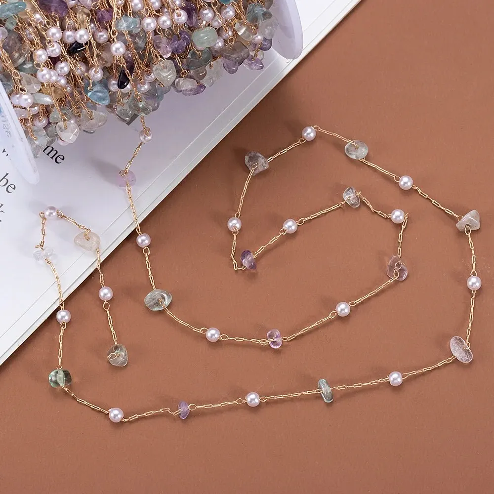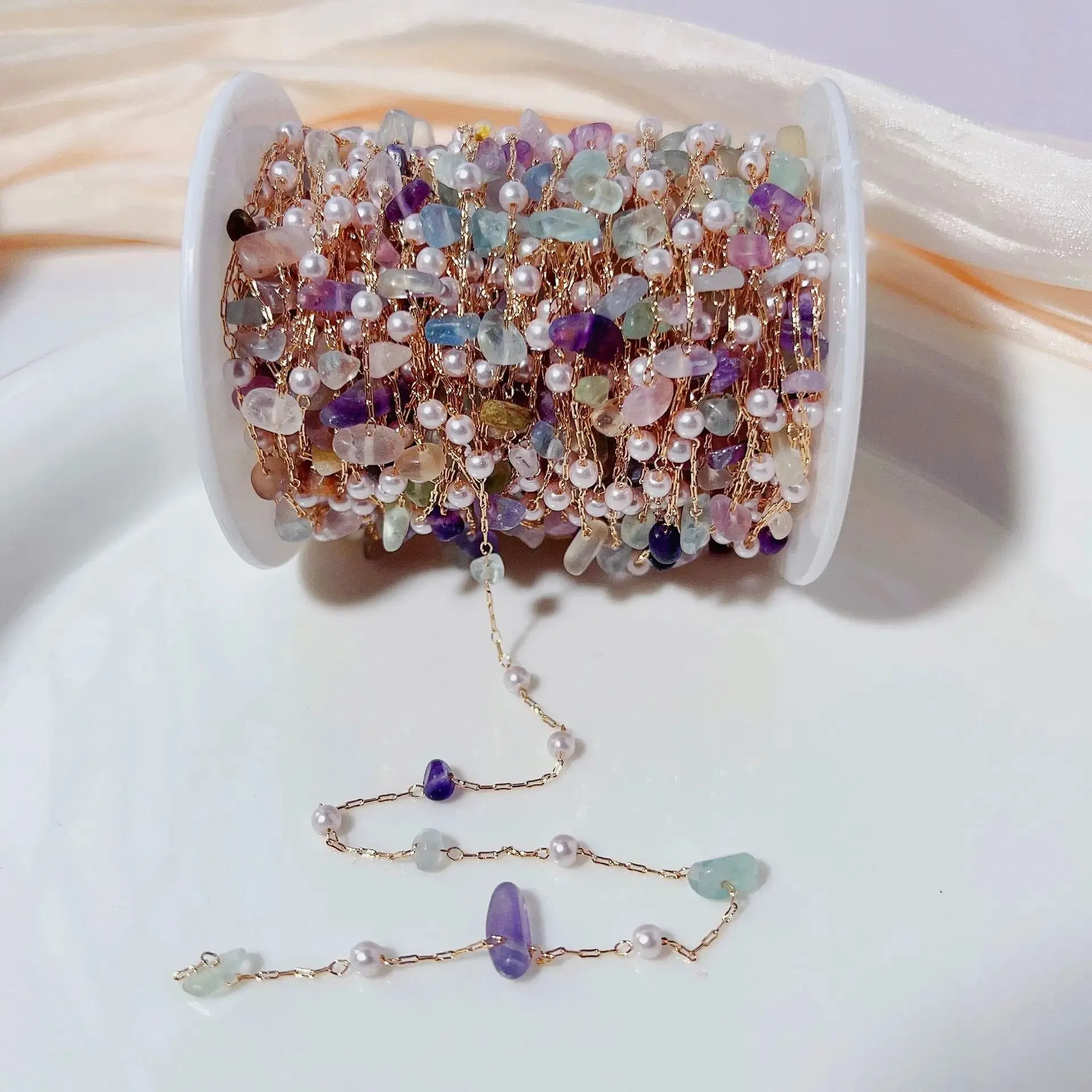 1 meter/lot Irregular Stone Beads Copper Chain with 4MM Pearls Beads Links for DIY Jewelry Necklace Bracelet Pendant Accessories