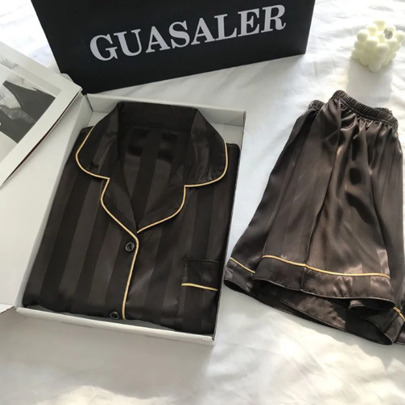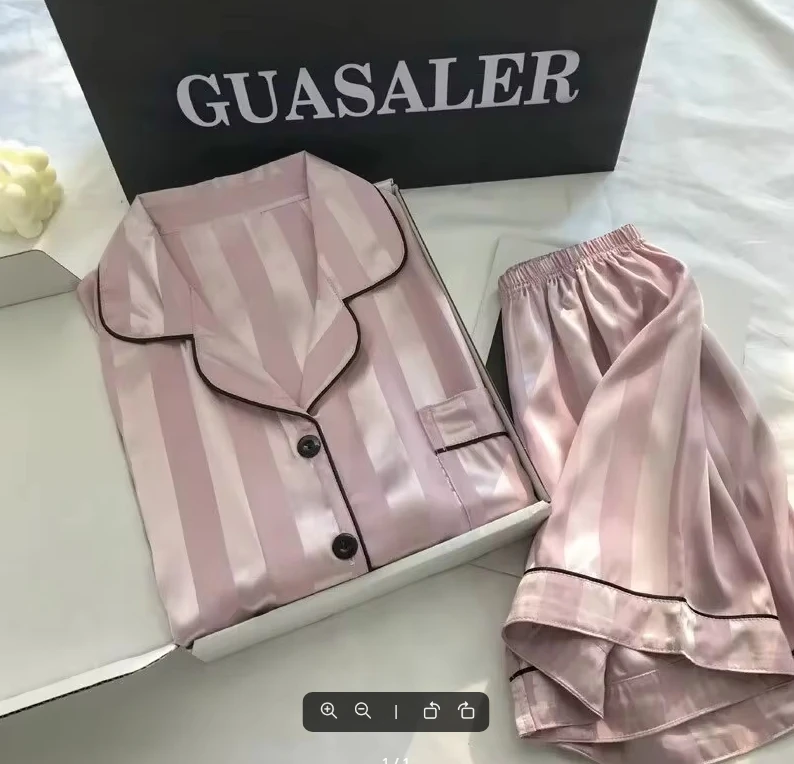 Be the first to review “1 Set Women’s Elegant Lounge Set Plus Size Satin Striped Button Up Short Sleeve Shirt & Pants Pajamas”