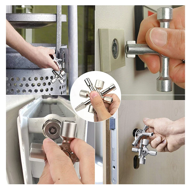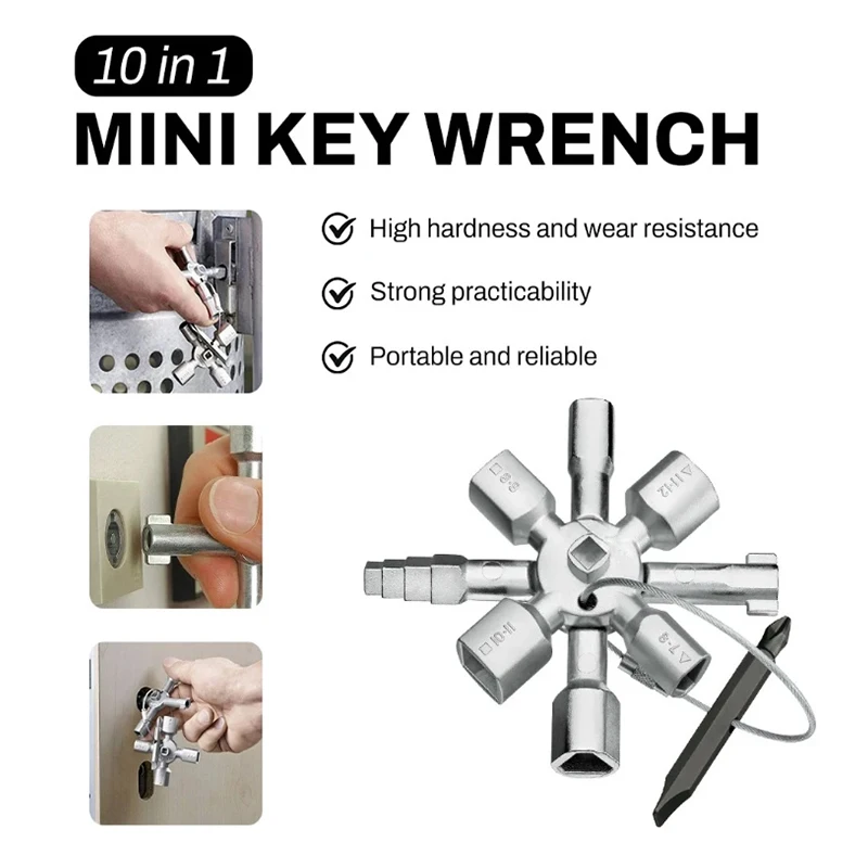 10 In 1 Multifunction Cross Switch Square Key Wrench Alloy Universal Triangle Elevator Electrical Cupboard Box Hand Tool