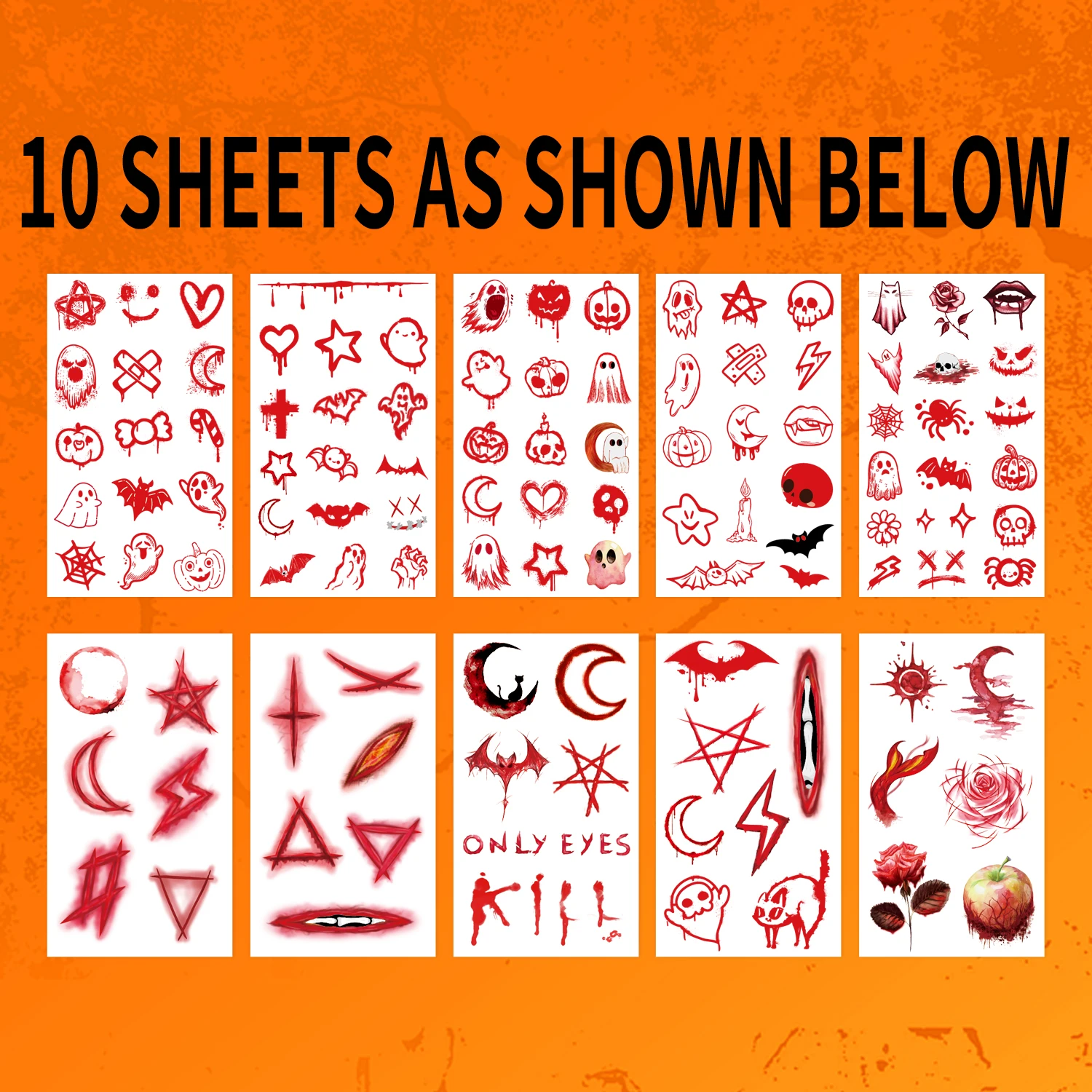 10 Sheets Mini Tattoos, Halloween Small Tattoos, Bad Fun Dressup Kit, Cute Finger Tattoos, Halloween Party Makeup Kit