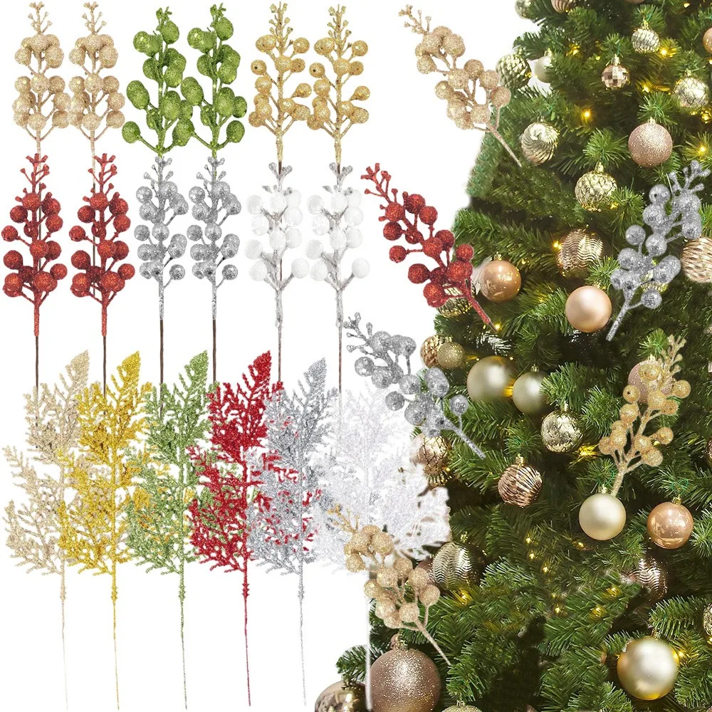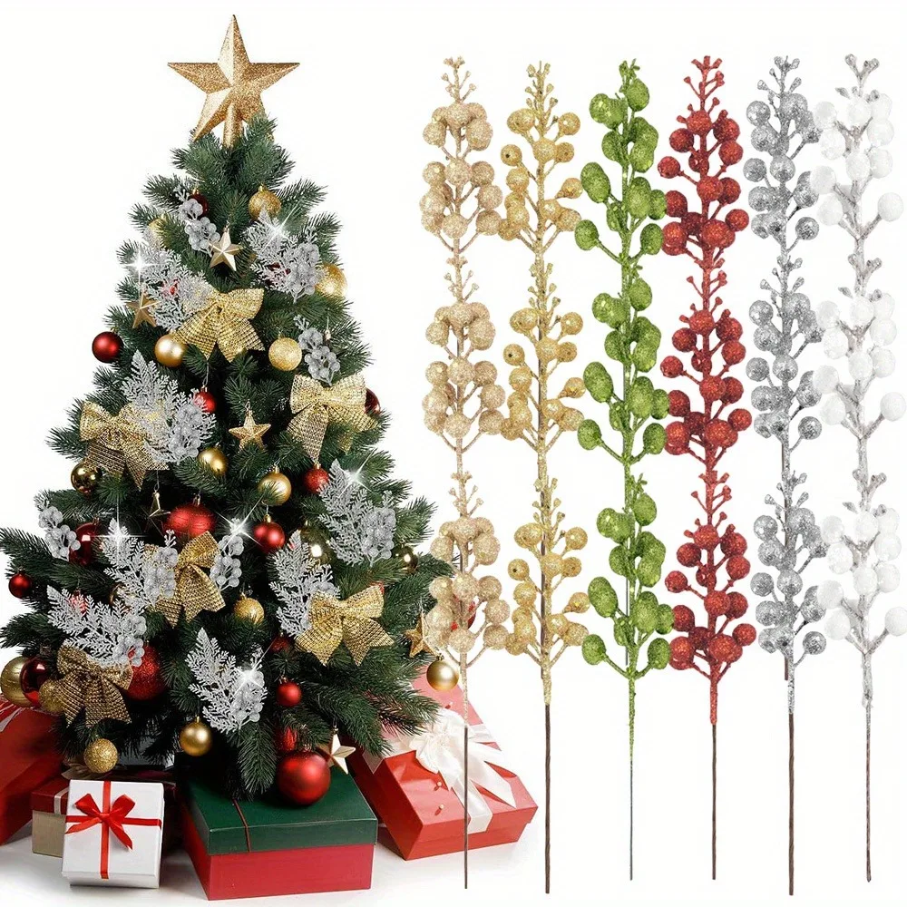 12Pcs Artificial Berry Bouquet Christmas Decoration Xmas Tree Pendant Ornament for Home Room Decor New Year 2026 Gifts Accessory