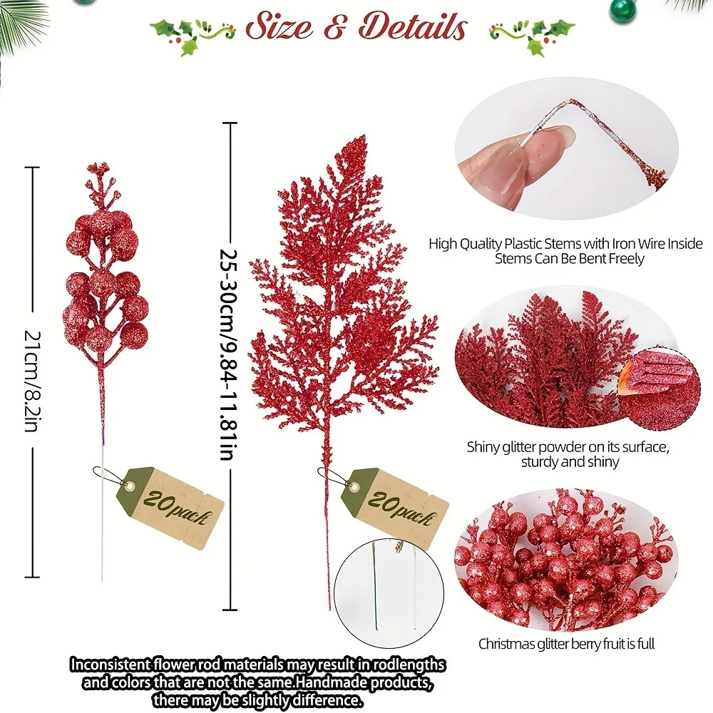Quantity: 12 pieces (6 branches + 6 berries)