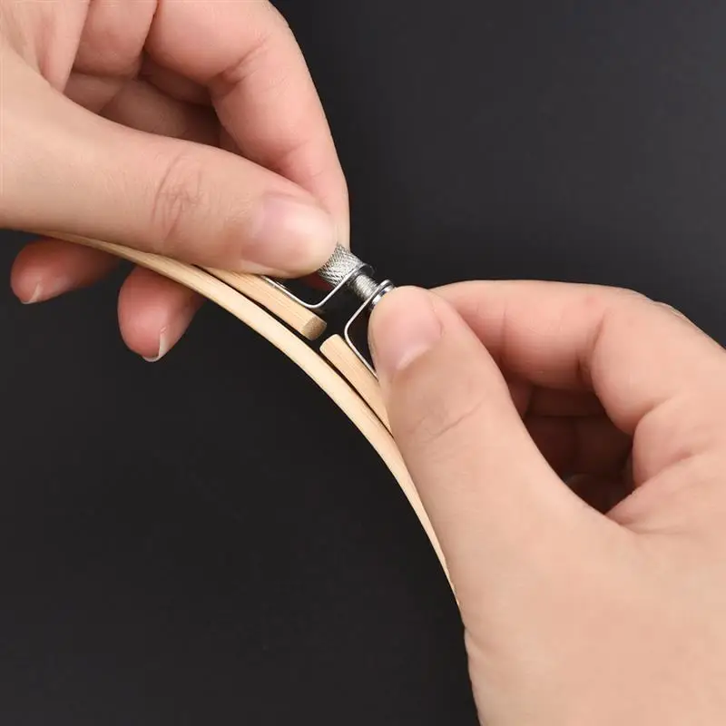 1Embroidery hoops have a adjustment screw that you can tighten when necessary to keep the fabric as tight as a drum