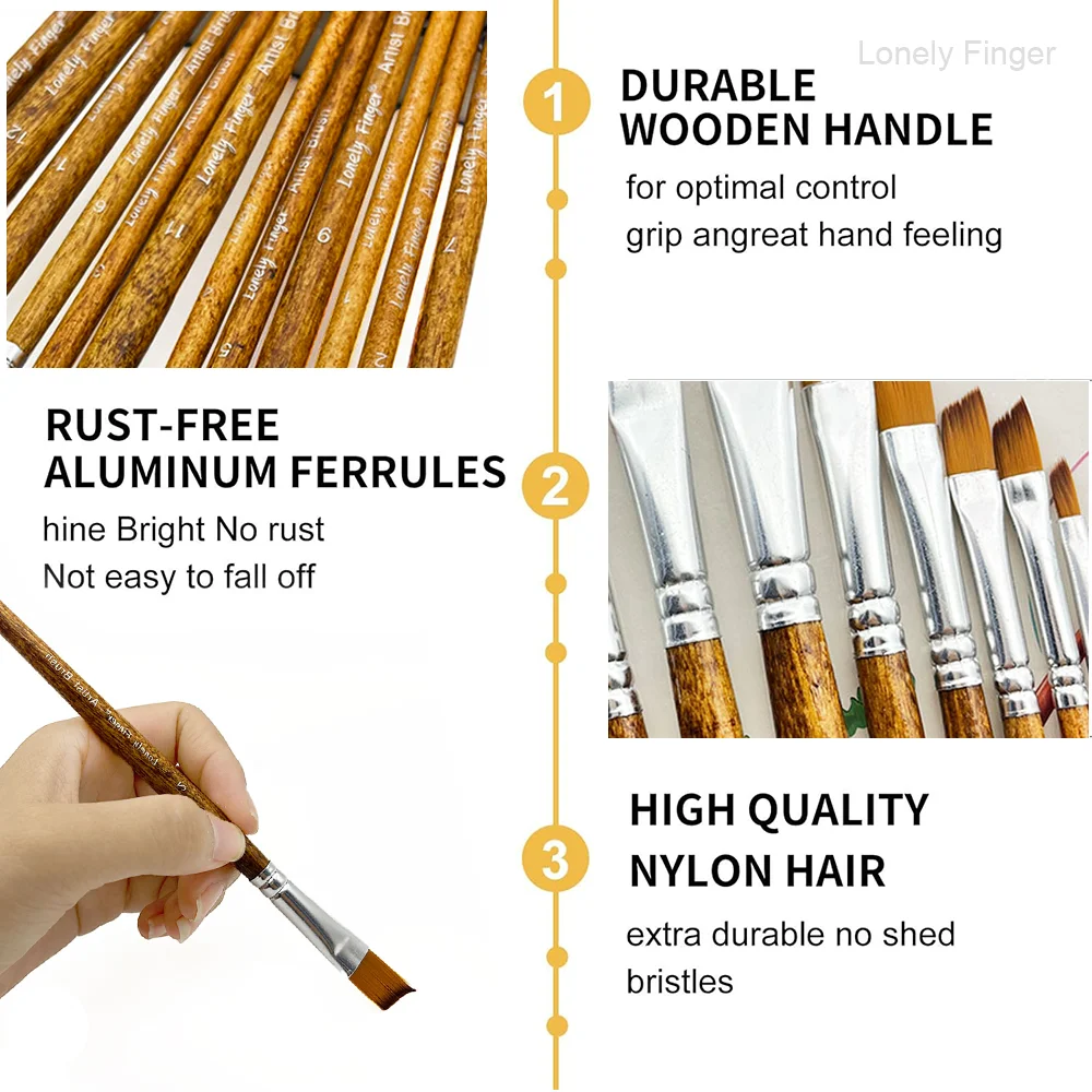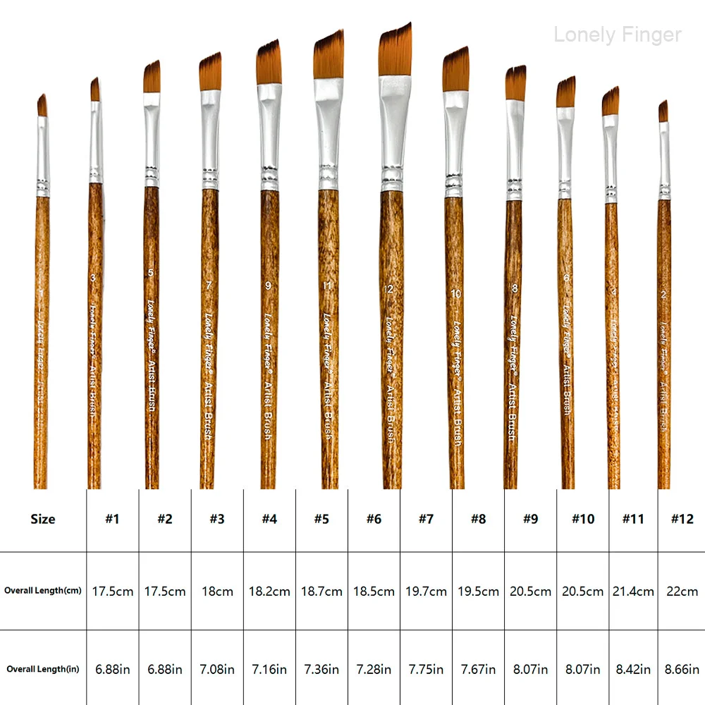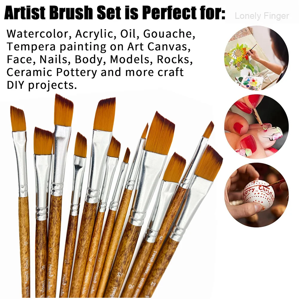 12pcs Angle-Head Watercolor Painting Brushes, Art Paint Brushes Set, Acrylic Paint Brush Set, Brown Professional Angle Painting for Watercolor Acrylics Oil, Model, Face Body Nail Art, Craft