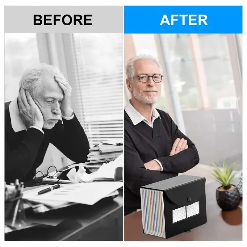 4. Our extension folder is designed with 12 expandable pockets, perfect for sorting all your different files neatly. Everything is in order, say goodbye to chaos