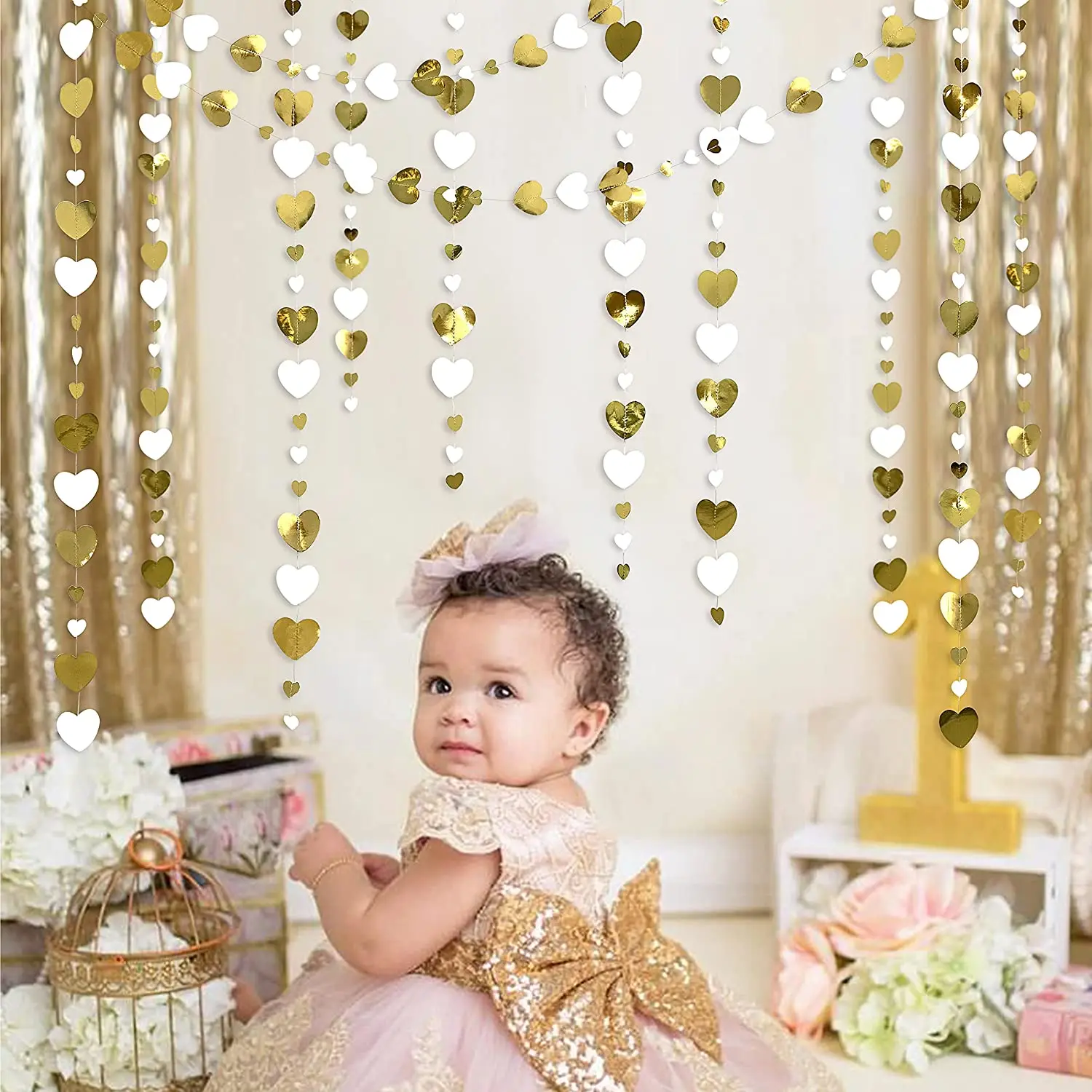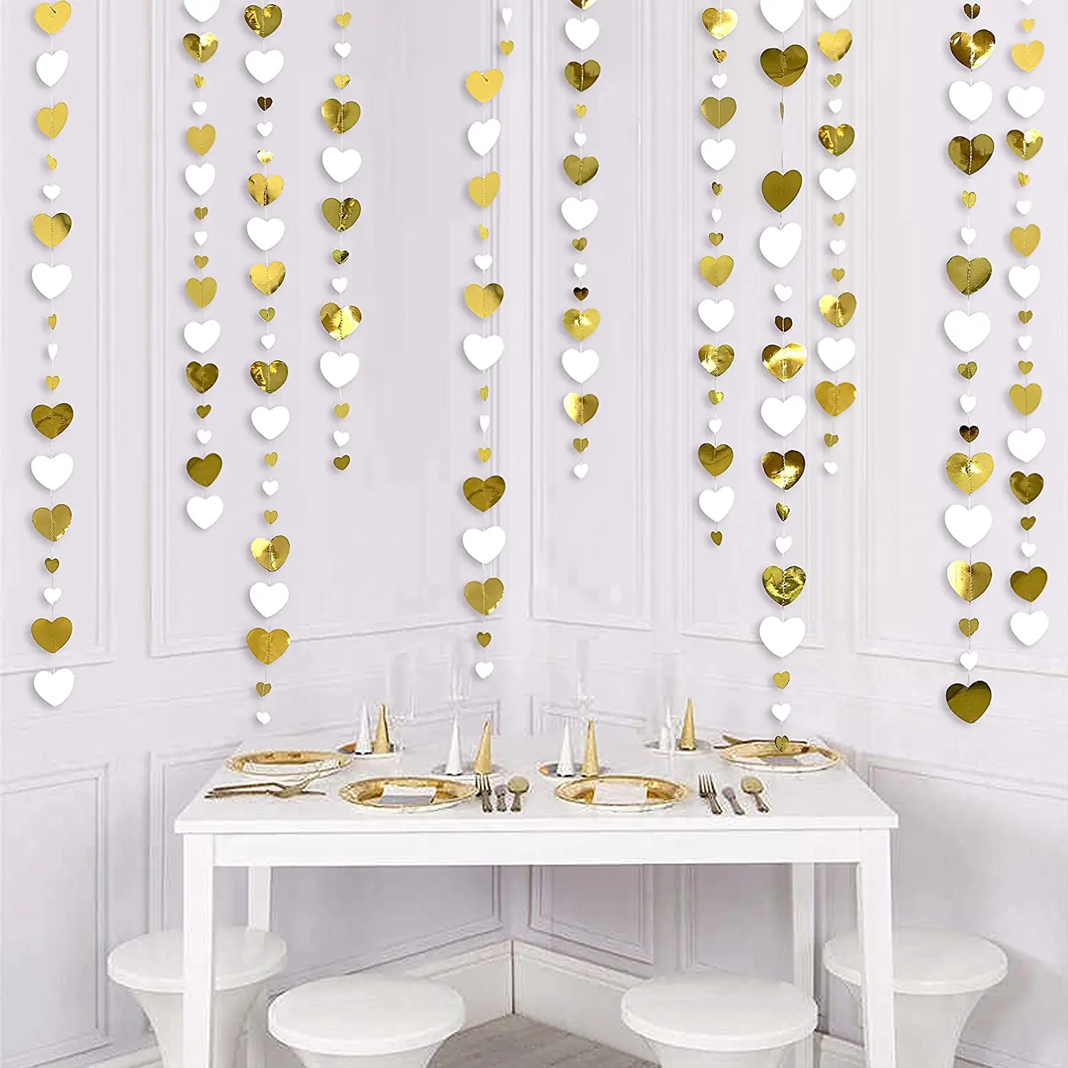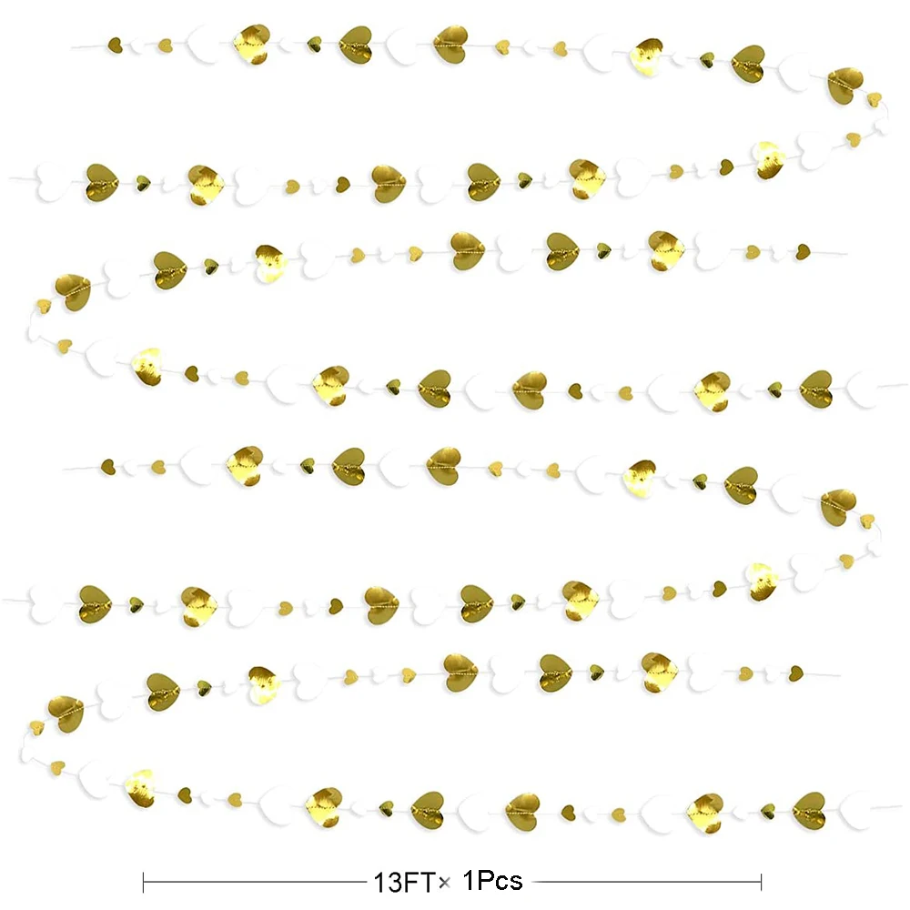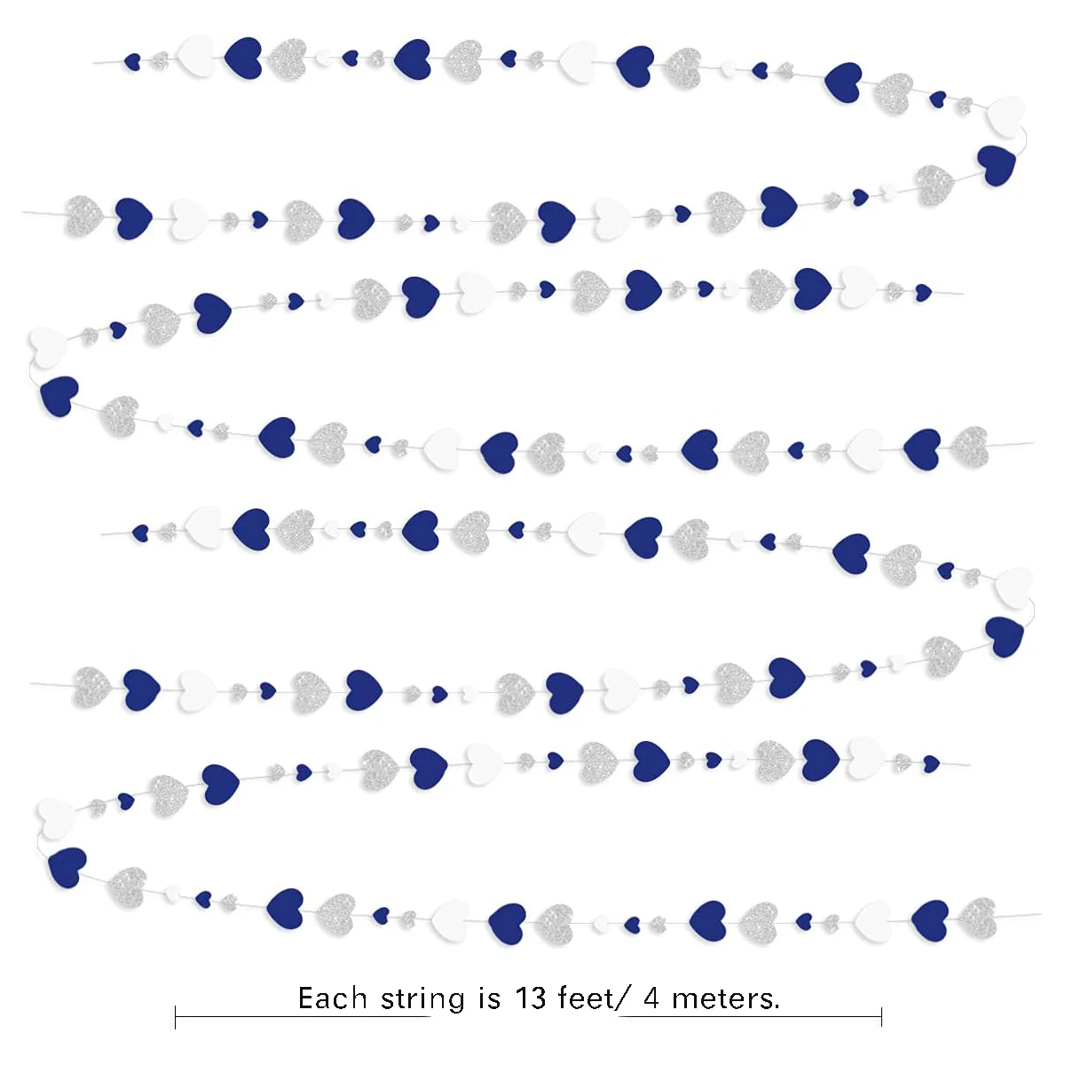 4M Royal Navy Blue Silver Gold Paper Love Heart Garlands Hanging for Wedding Baby Boy Birthday Party Wall Decorations Supplies
