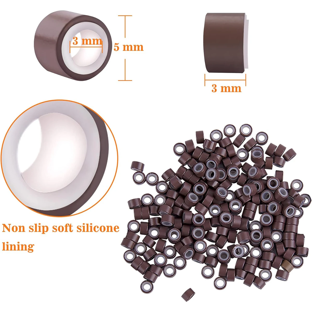 1Bag 5.0*3.0*3.0mm Aluminium Micro ring Silicone lined Links Beads tube for Feather Human Hair Extension tools accessories 100Pcs