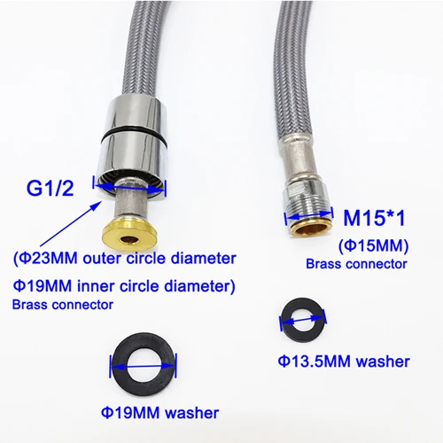 *SPECIFICATIONS IMPORTANT: One End :G1/2 ” female thread (About 19mm or 0.75 inch )connects to faucet , fits most spray heads which have G1/2 straight male thread ( thread size about 20mm or 0.8 inch).