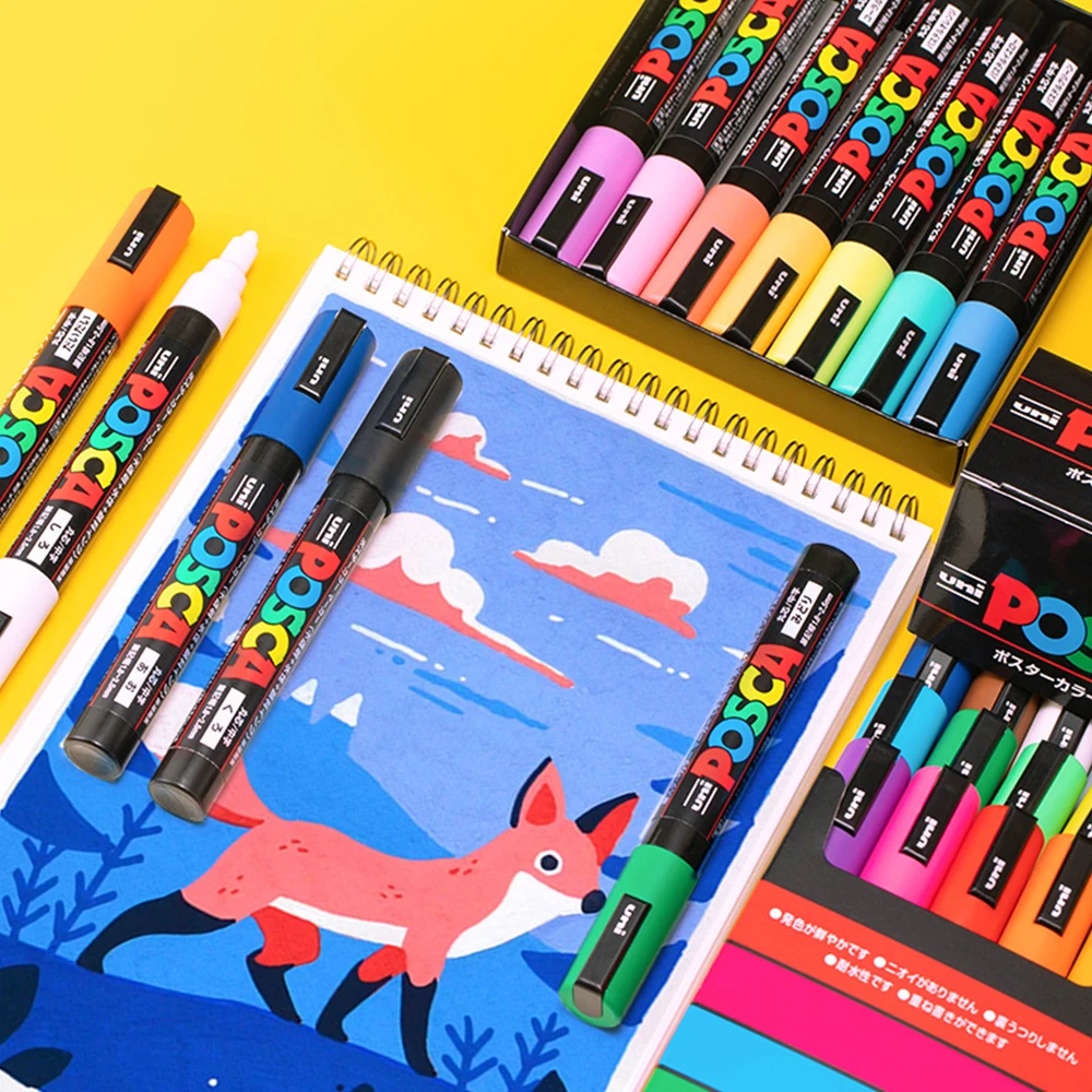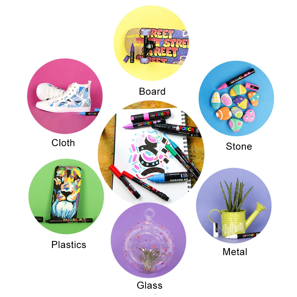 1pcs Japan UNI POSCA Markers PC-1M/3M/5M Acrylic Graffiti Pen Waterproof DIY Stackable Color Art Painting School Supplies