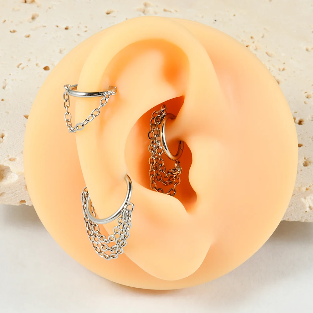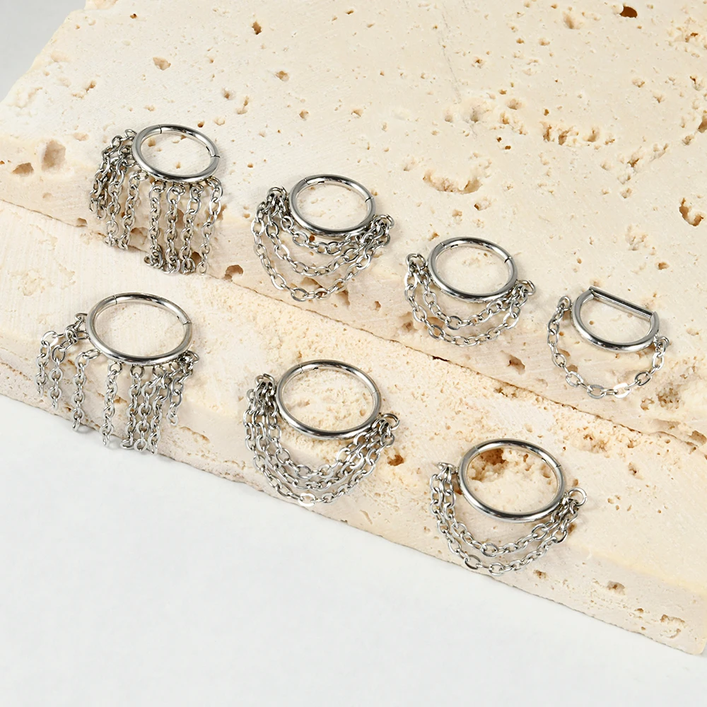 1pcs Surgical Steel Chain Dangle Septum Clicker Hoop Ear Cartilage Tragus Septum Piercing Ring Nose Ring Body Piercing Jewelry