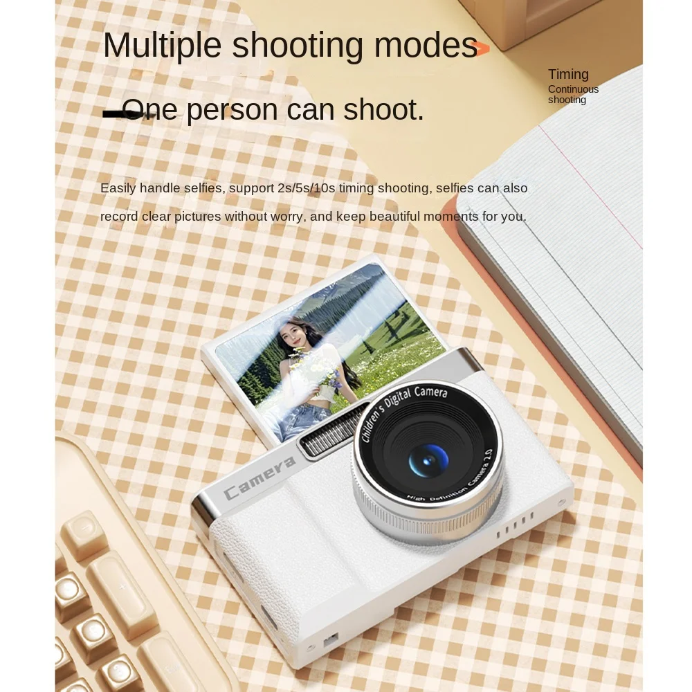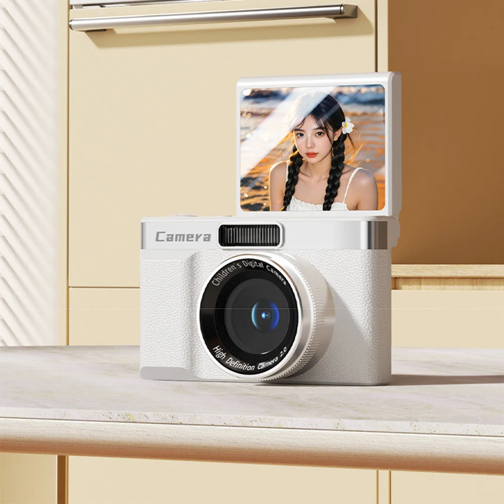 Digital camera, mini front and rear double camera for students, 8x zooming, 2.4inch large screen, supports 4K recording.