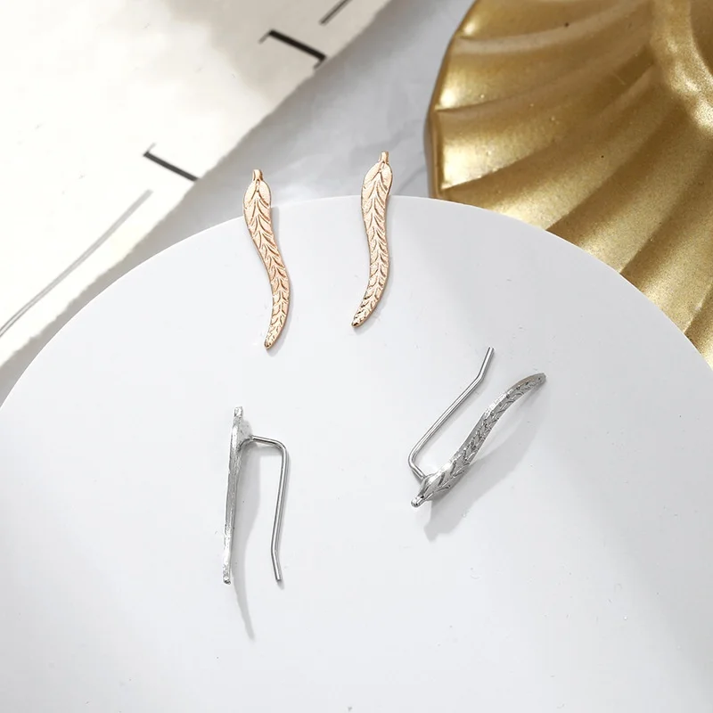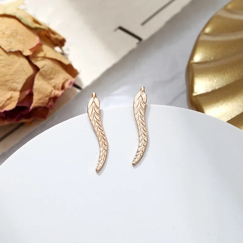 2025 Vintage Jewelry Exquisite Golden Leaf Earrings Modern Beautiful Feather Ear Stud Earrings For Women Brincos Bijoux