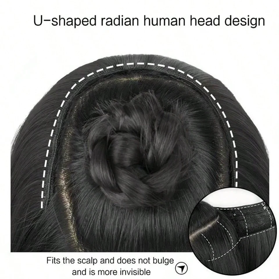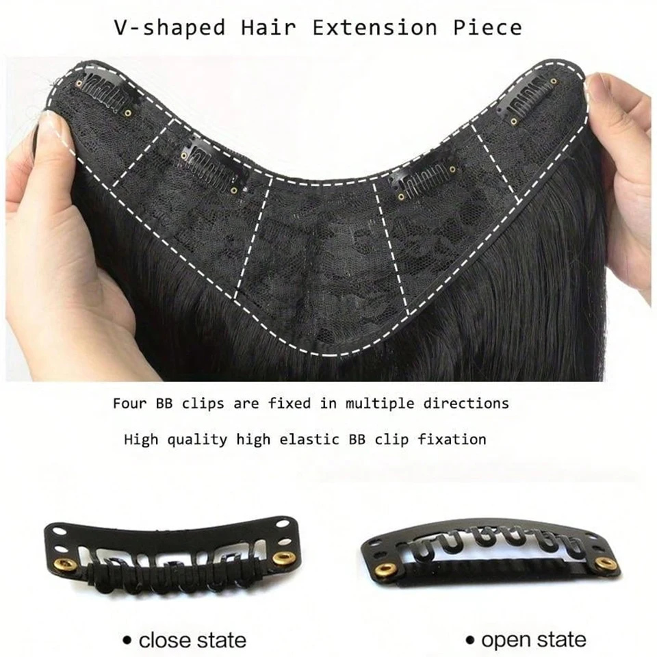 24inch Synthetic Fiber V-Shaped Big Wave Hair Extensions For Caucasian Women, Invisible 4-Clips Hair Extensions