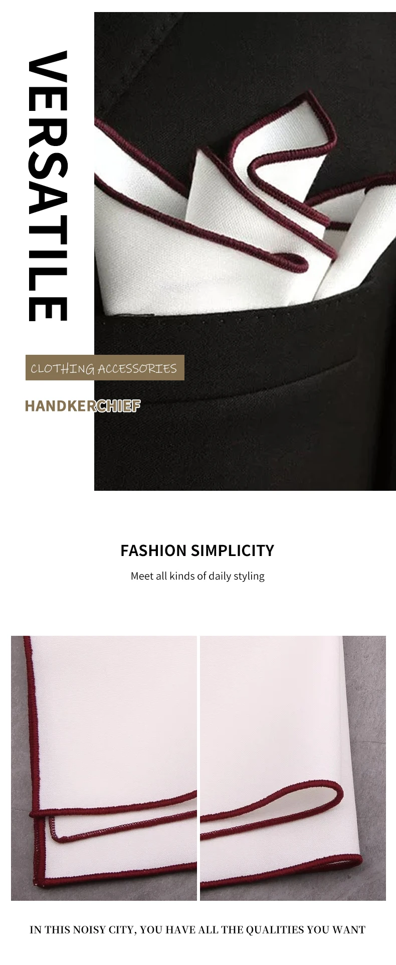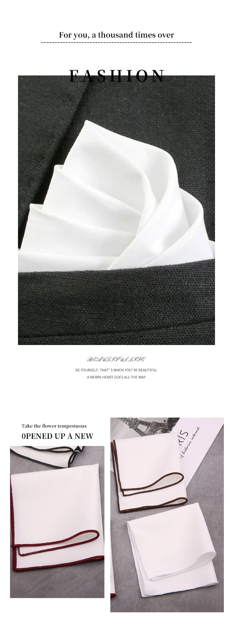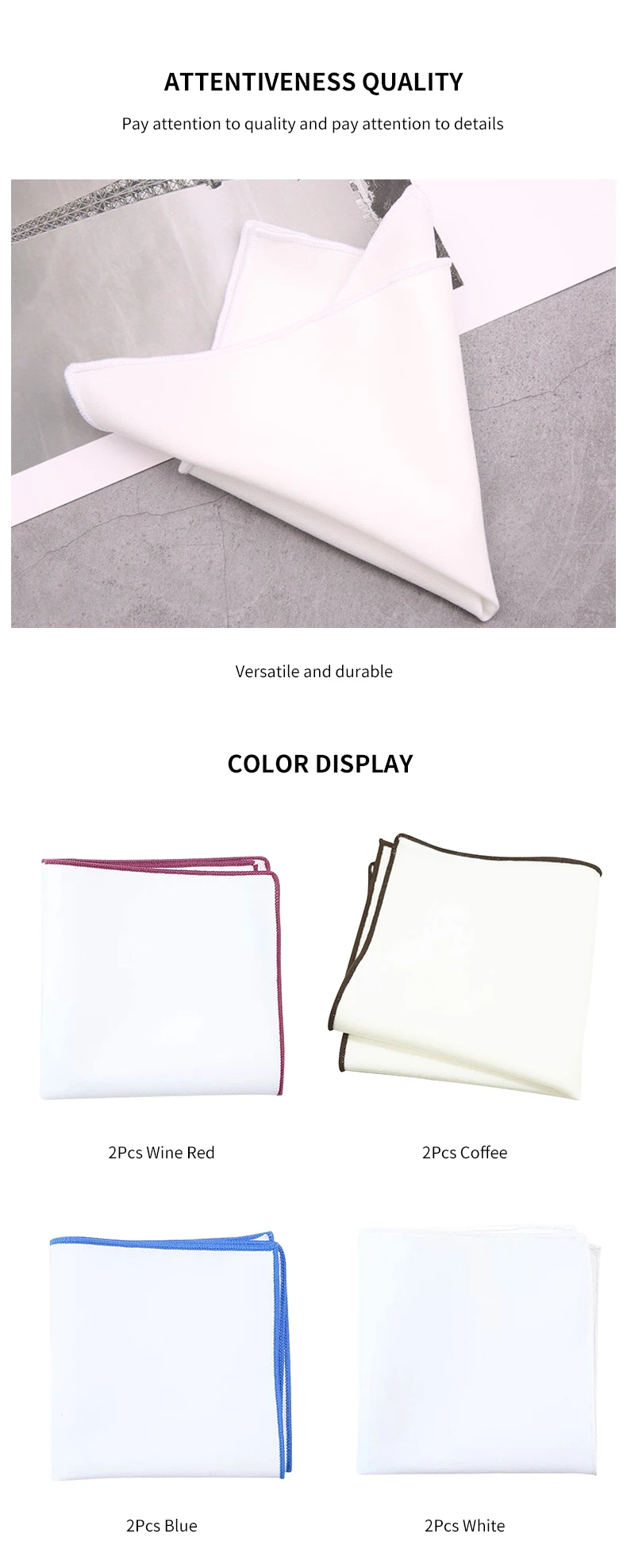 1. Widely Used: Wipe the screen or glass, clean your hands, wipe sweat, and wash your face; Handkerchief can also be used for everyday nose wiping for allergies; Using it as a pocket square to add a bit of formality to suits is also a smart choice.
