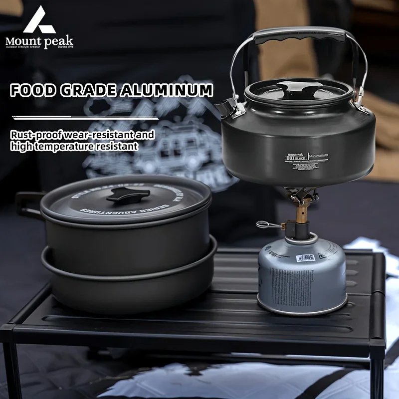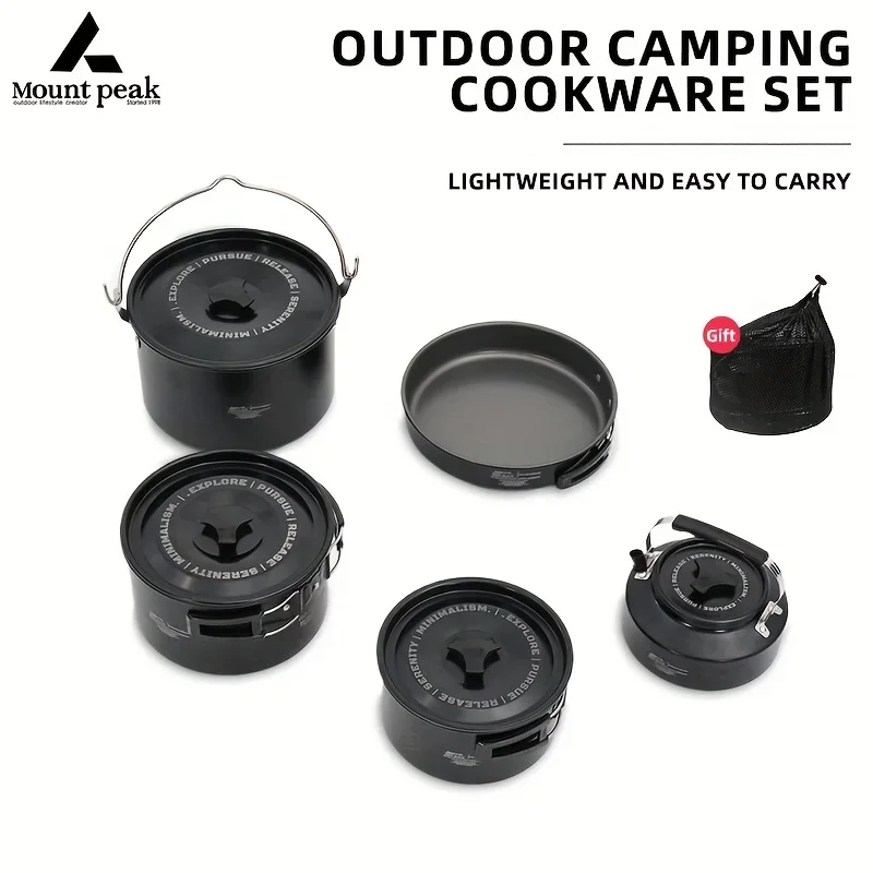 3-5 piece aluminum alloy camping cookware set, portable outdoor cooking kit, frying pan, kettle, suitable for hiking and picnics