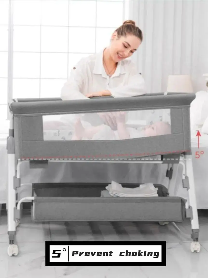 The bassinet’s height can be adjusted in five increments, making it compatible with different bed and sofa heights. This seamless integration allows for easier access to your baby, providing added convenience and peace of mind.