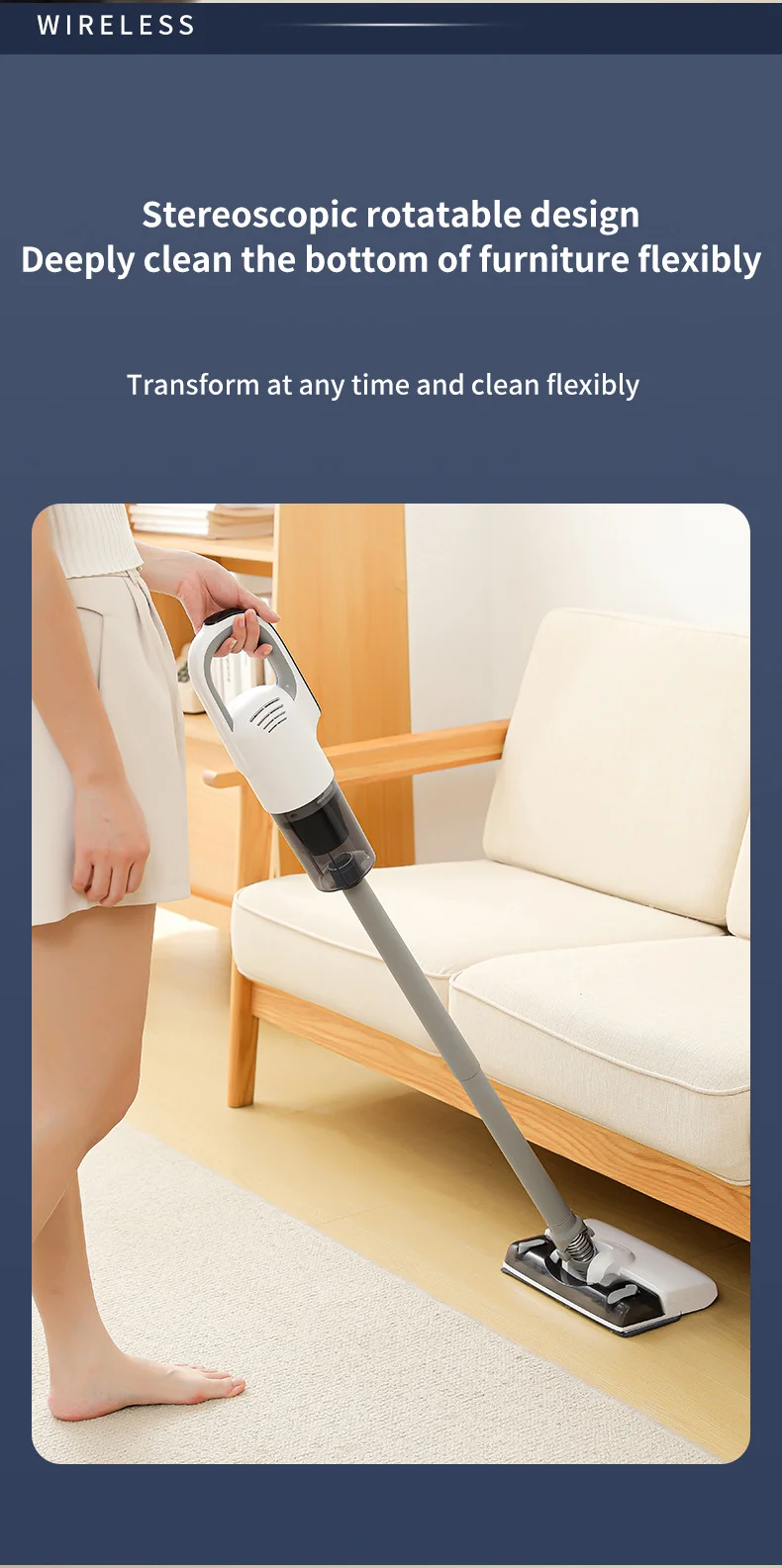 Stereoscopic rotatable design Deeply clean the bottom of furniture flexibly