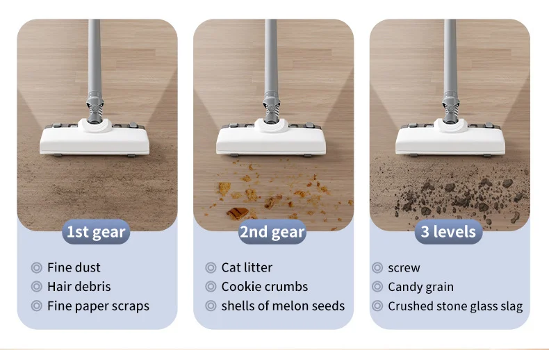 2.Super Strong Suction (19KPA): Capable of sucking up large debris in one go.