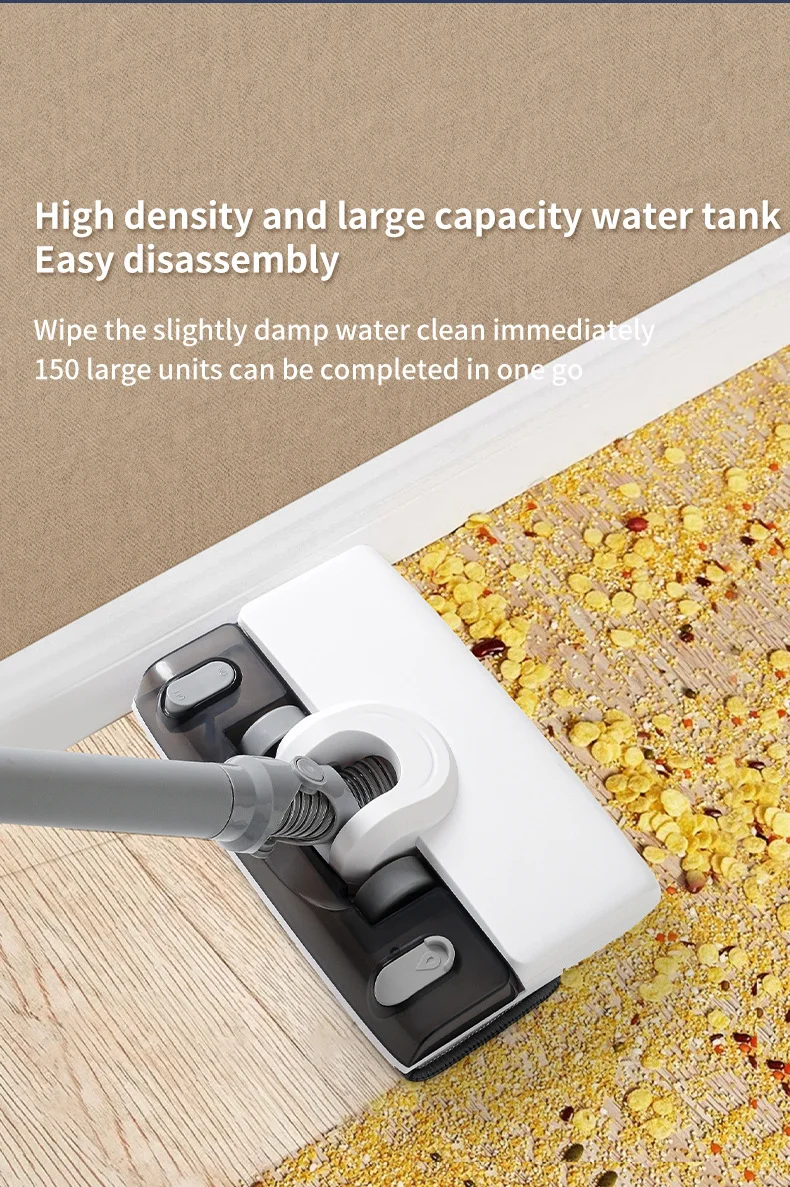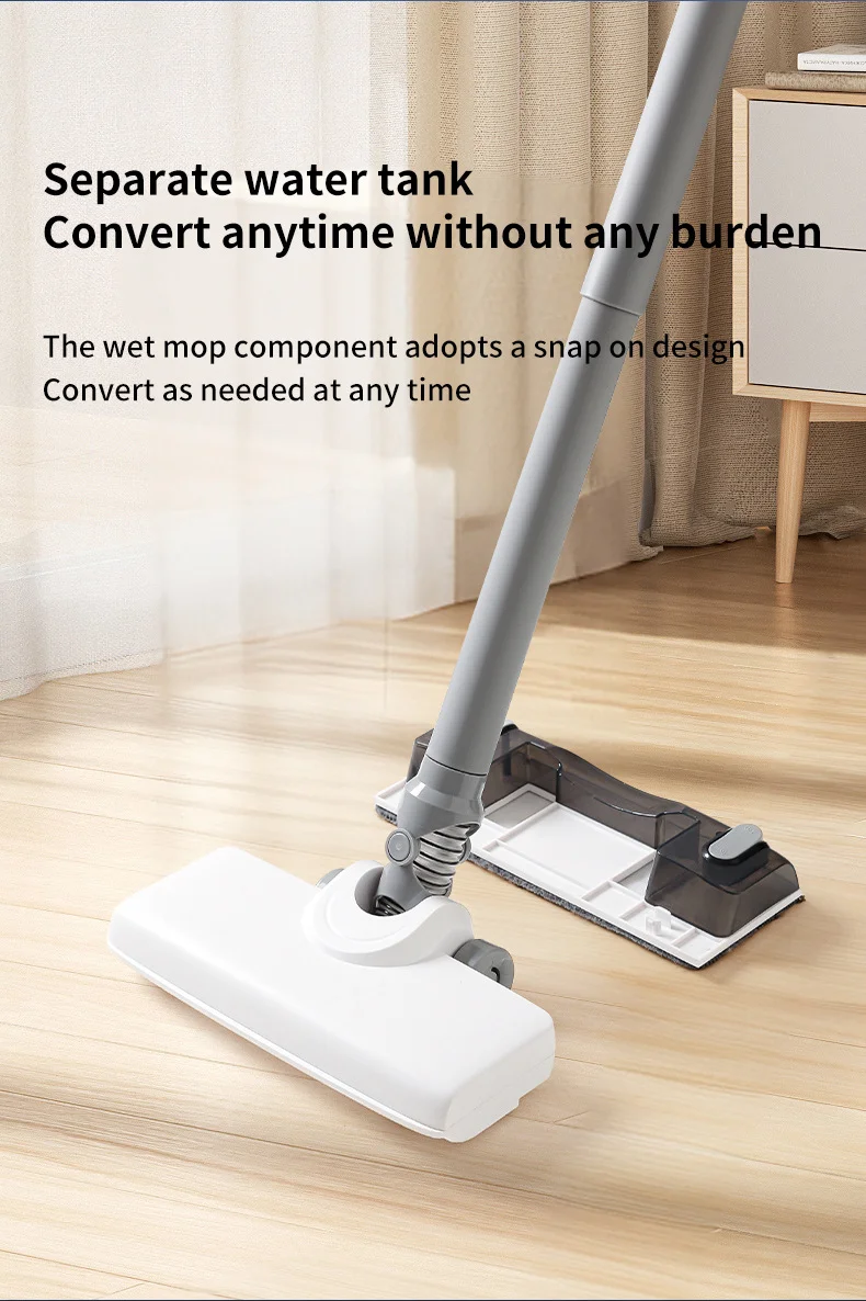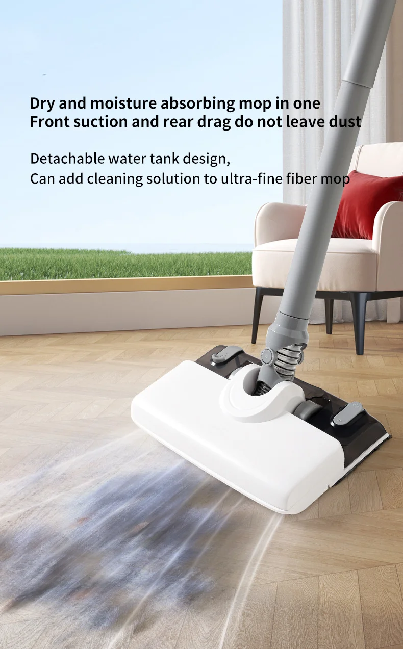 Dry and moisture absorbing mop in one Front suction and rear drag do not leave dust