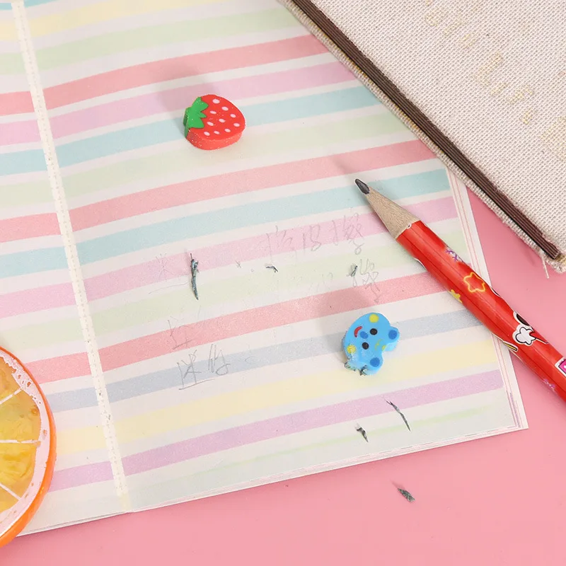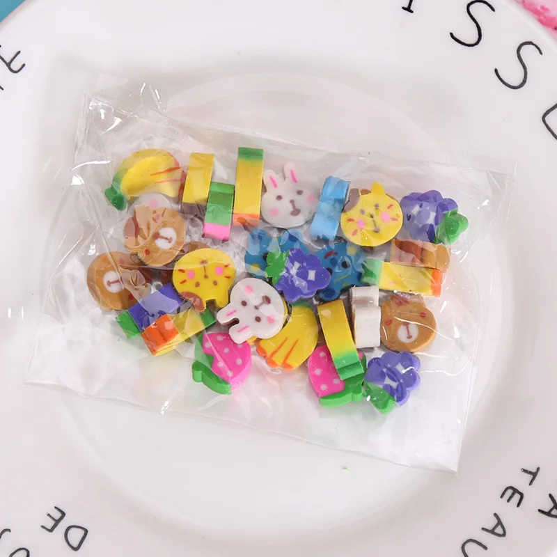 30Pcs Cute Cartoon Pencil Erasers Fruit Animal Shape Rubber Kids School Correction Supplies Student Gift Mini Eraser