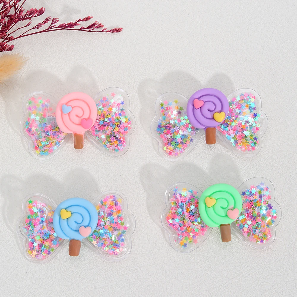 4 Pieces Girls Lollipop Bowknot Hair Clips Decorative Star Filled PVC Multicolor Hair Barrettes Cute Kids Hair Accessories