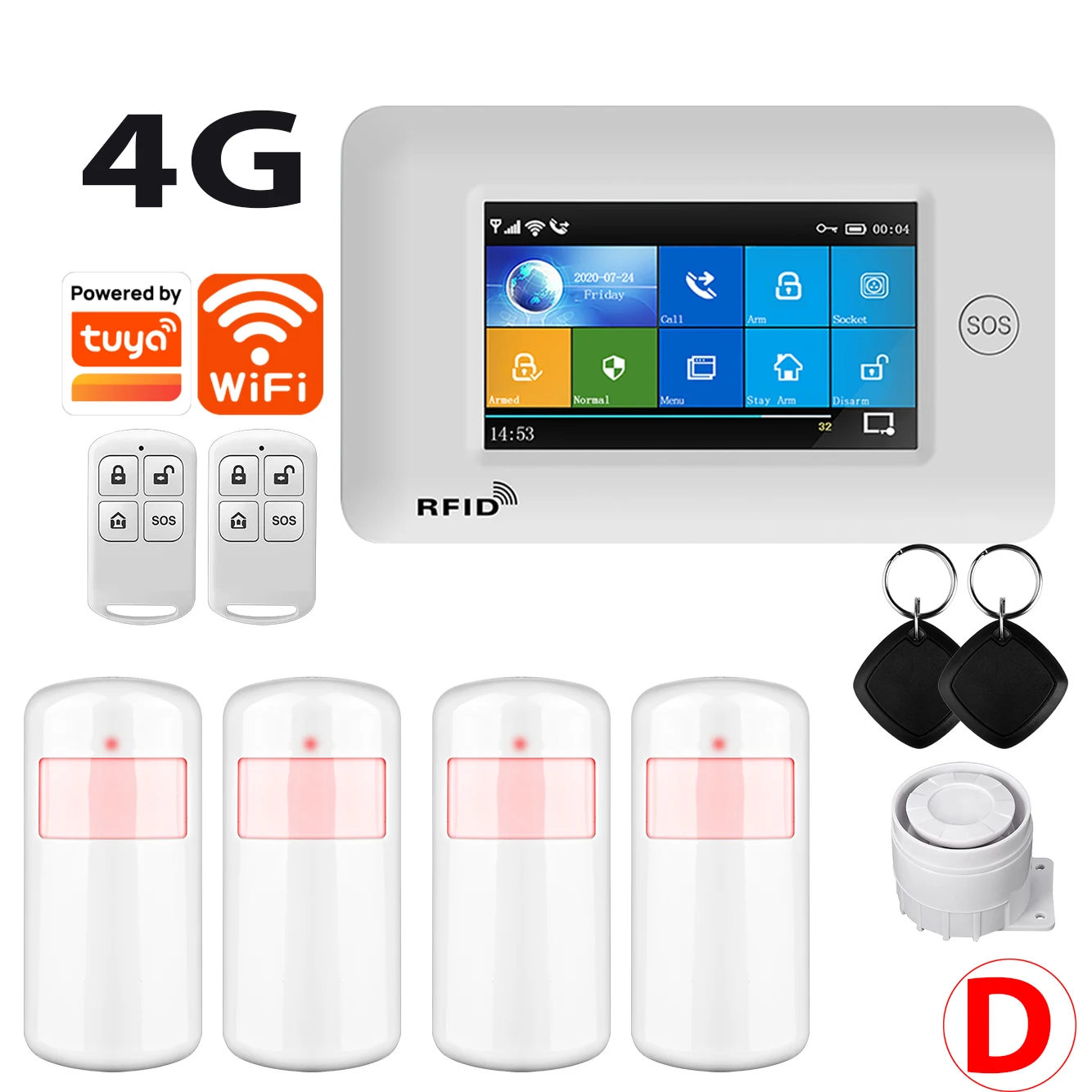 433MHz Touch Screen Wireless 2G 4G WIFI GSM RFID Card Burglar Alarm System Smart Home Security DIY Alarm TUYA Smart Life
