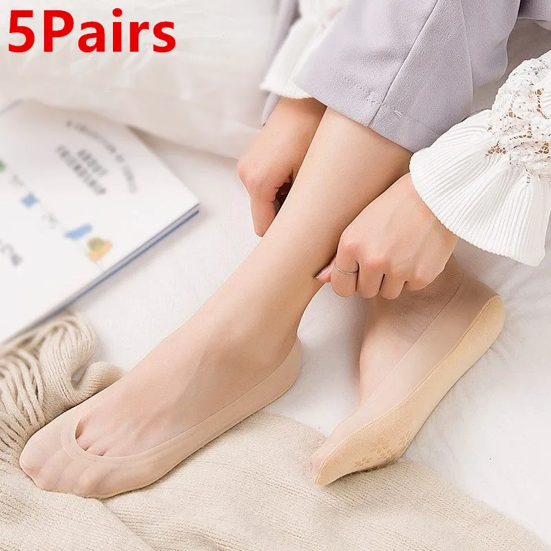 5 Pairs/Lot Socks Women’s Ankle Short No-Show Set Foot Cotton Female Invisible White Low Cut Summer Non-Slip Boat Sock