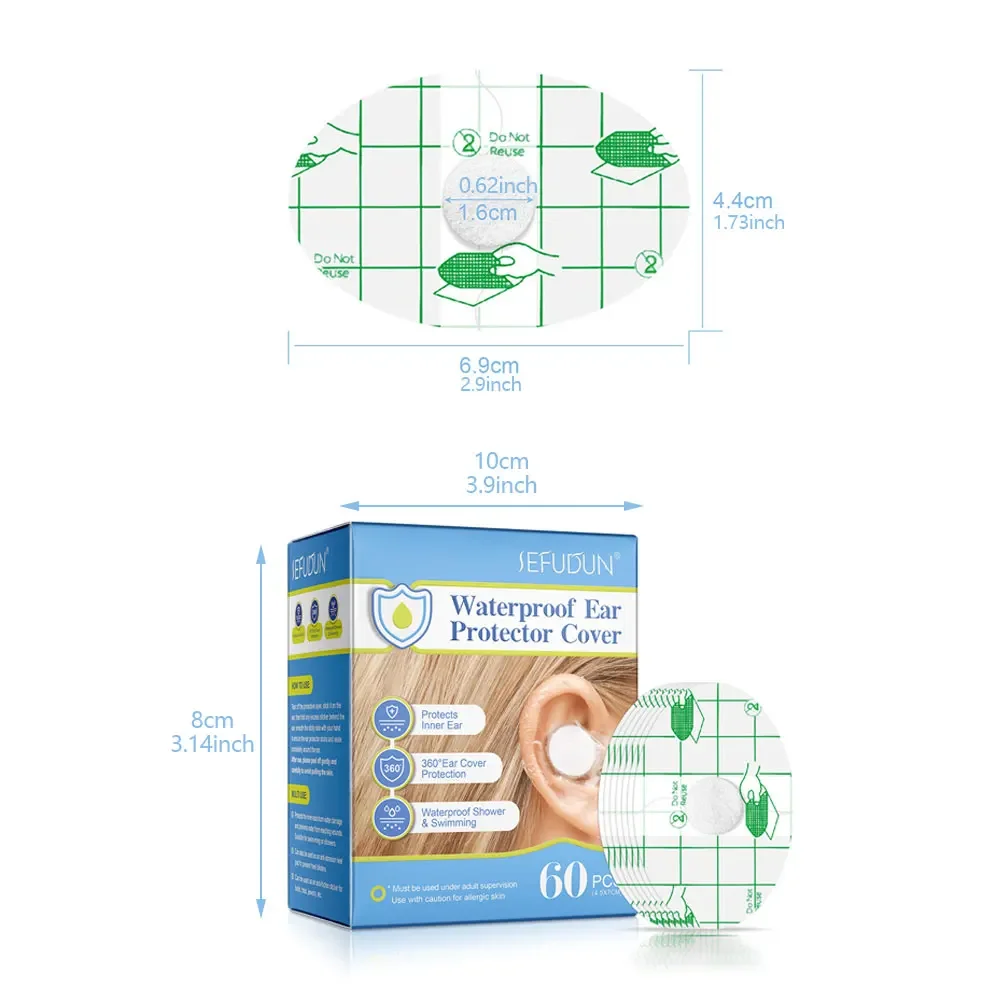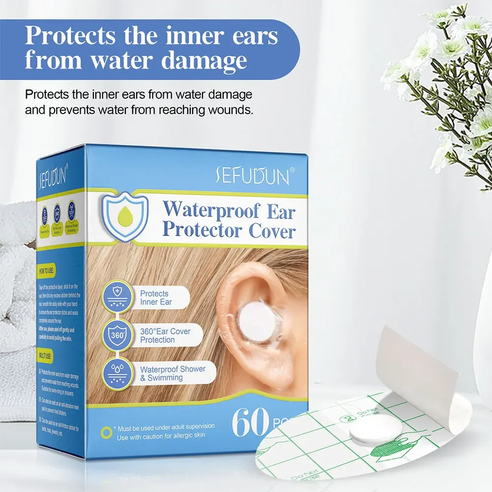 60pcs/box Waterproof Ear Patches Adult Children Shampoo Bathing Hair Washing Ear Protector Cover Waterproof Ear Care Stickers