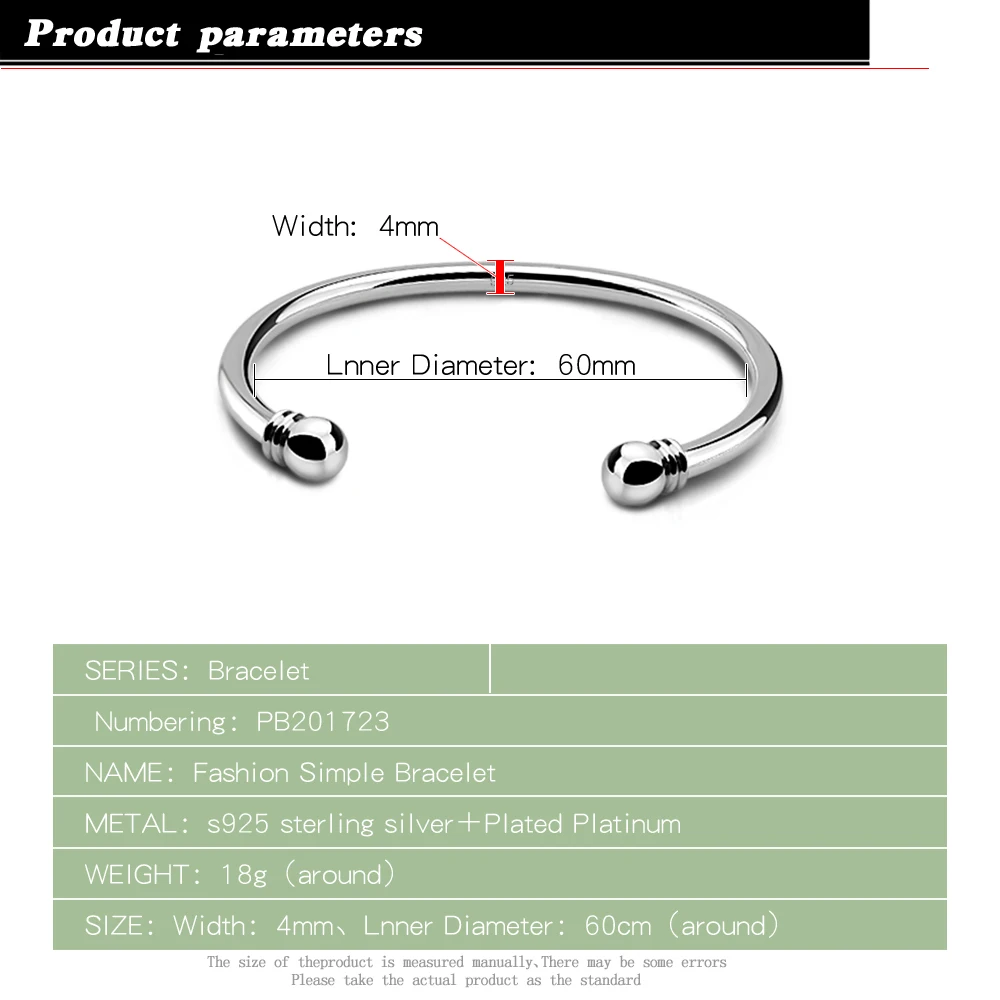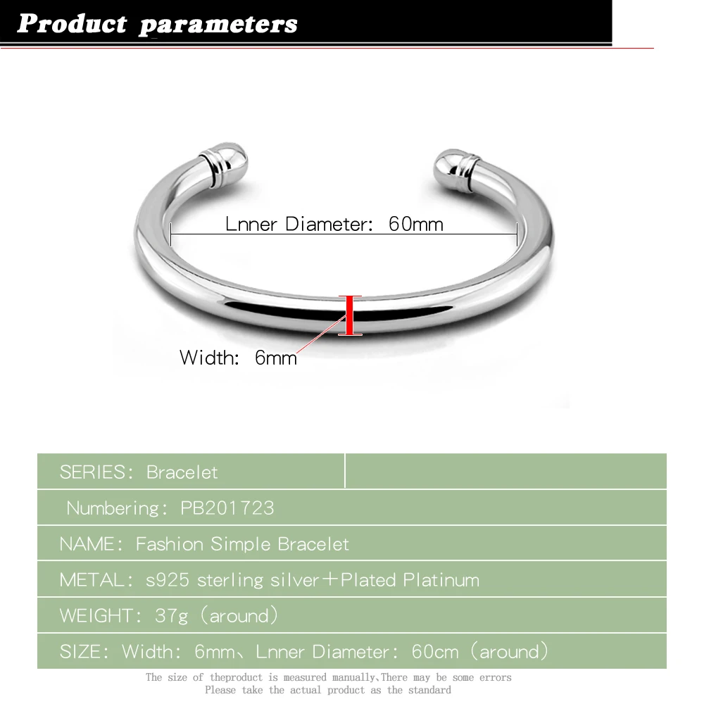 925 Silver Bracelet Fashion Simple Stackable Bangle Smooth Inner Surface Minimalist Fine Jewelry Gift for Valentine’s & Birthday