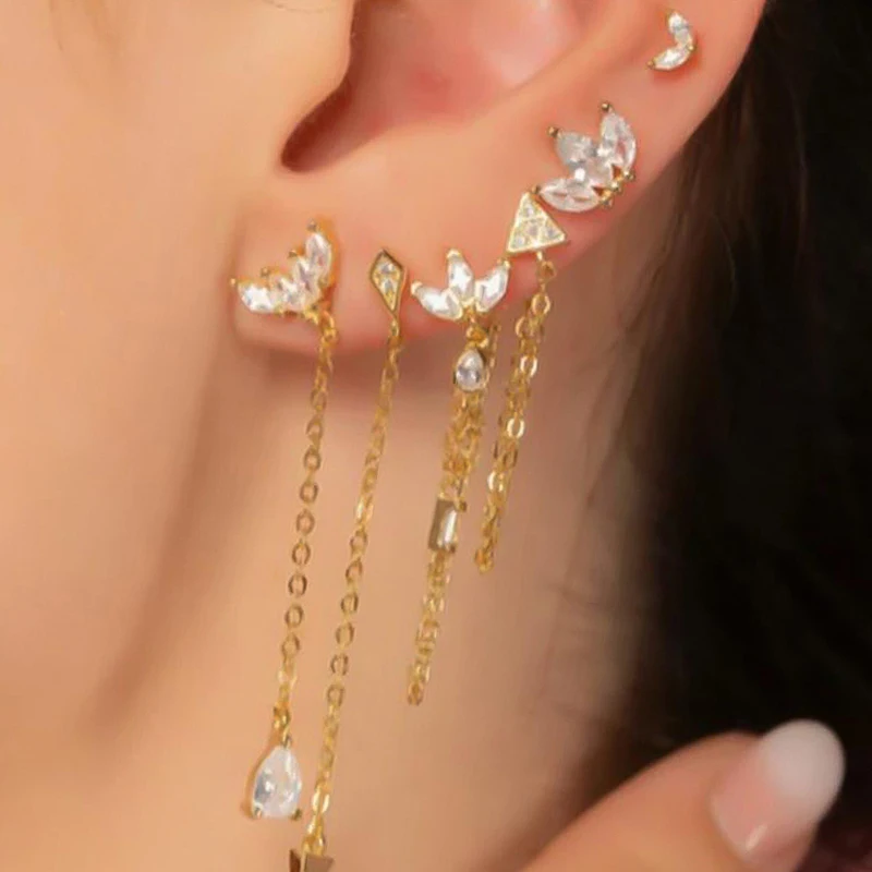 925 Sterling Silver Needle Vintage Gold Earrings Luxury Long Chain Tassel Crystal Hoop Earrings for Women Party Trend Jewelry