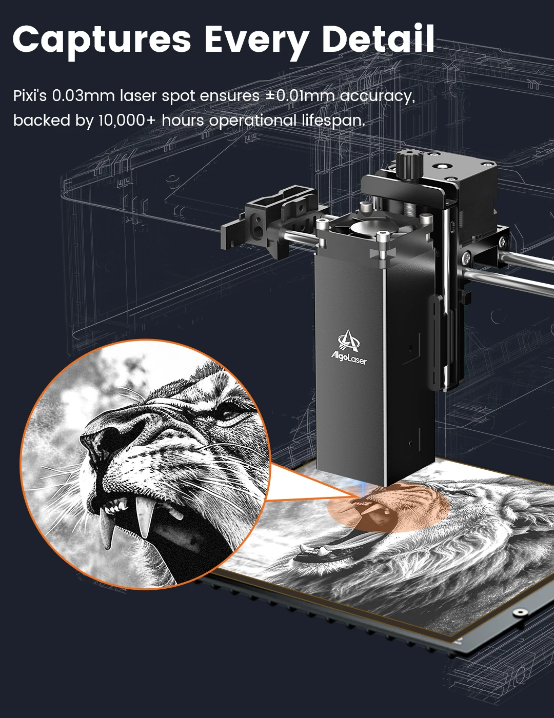 ✨Suitable for engraving a variety of materials: The PIXI model can engrave: wood, paper, plastic, leather, bamboo, kraft paper, painted metal, and more! Can cut 3-9mm paper, wood, leather with 10W laser Power