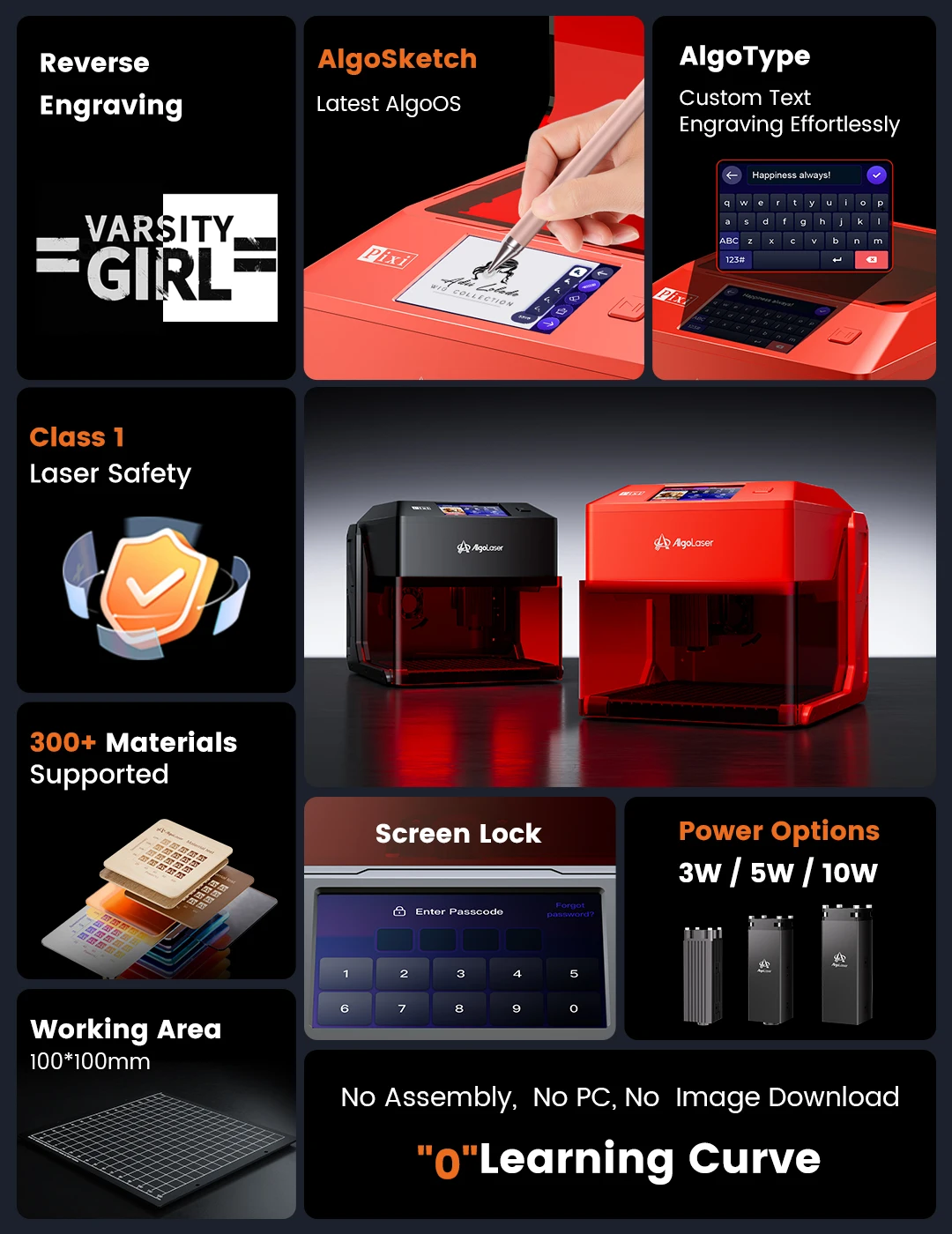 The upgraded AlgoOS system boosts performance and adds new features like AlgoSketch(drawing&writing), AlgoType(text input), reverse engraving, lock screen and newly upgraded UI design. It makes using the Pixi easier, more flexible, and way more fun!