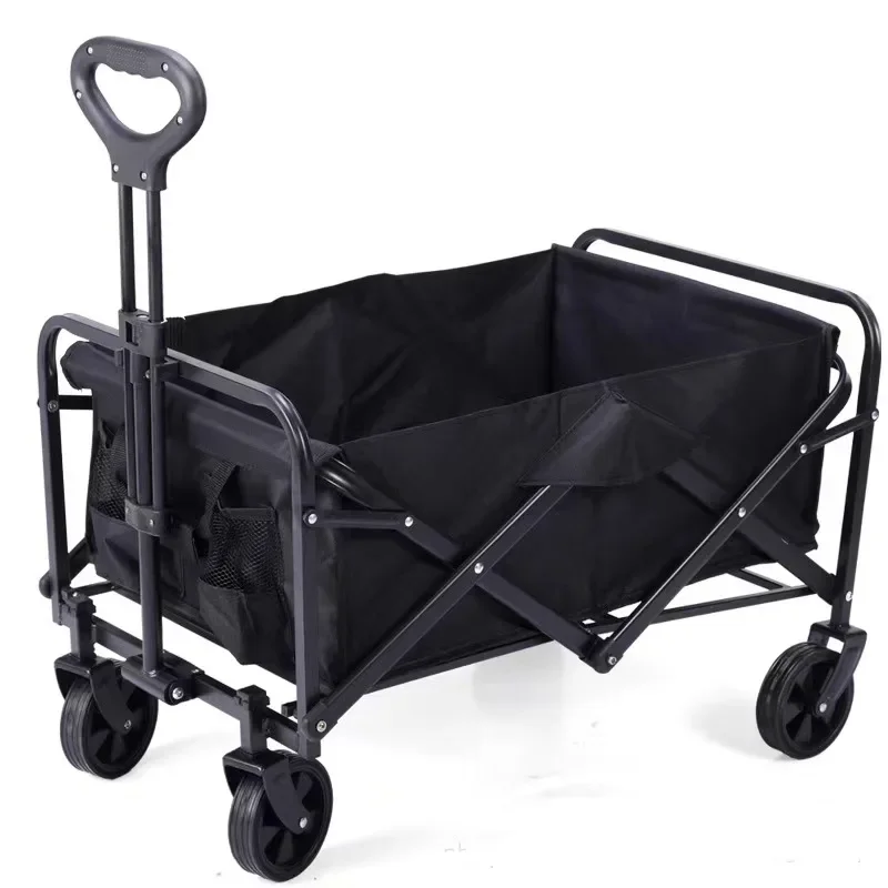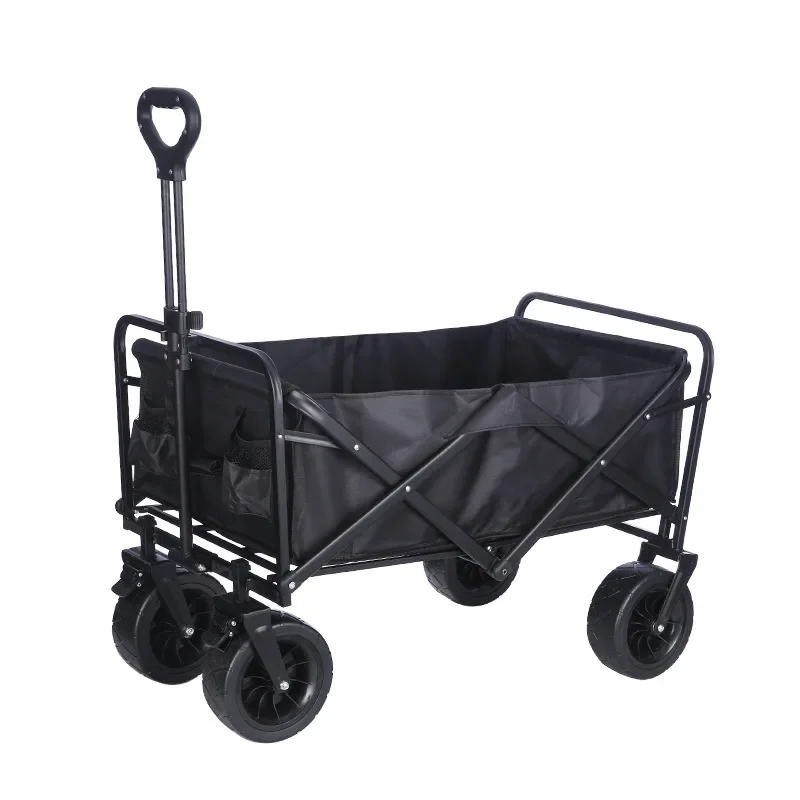 | folding camping wagon, portable utility cart, collapsible hand truck, outdoor gear cart, camping trailer, steel frame wagon, garden trolley, foldable push cart, heavy-duty outdoor wagon, rolling gear hauler |
