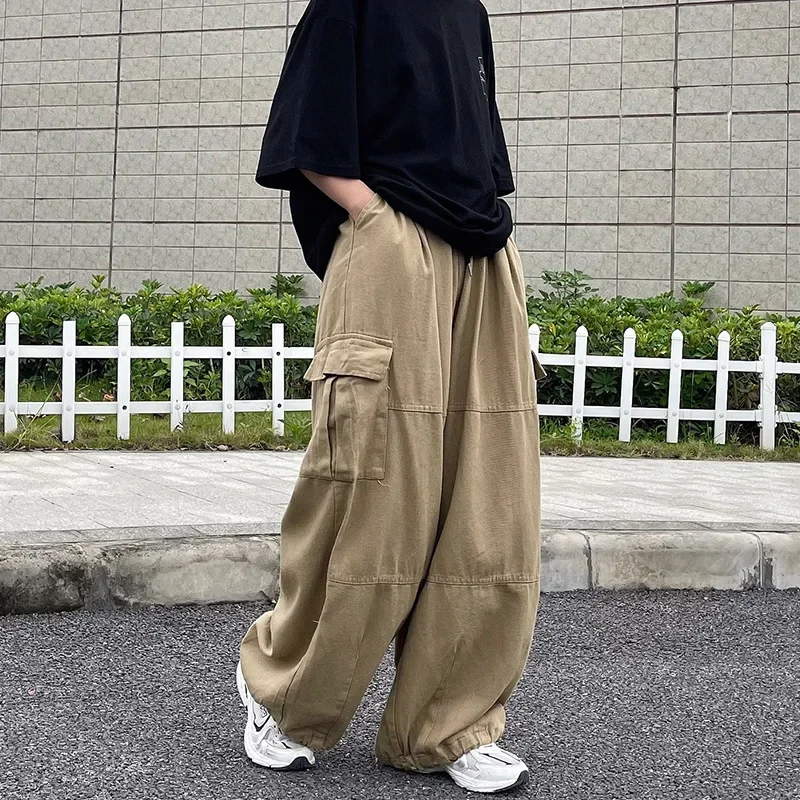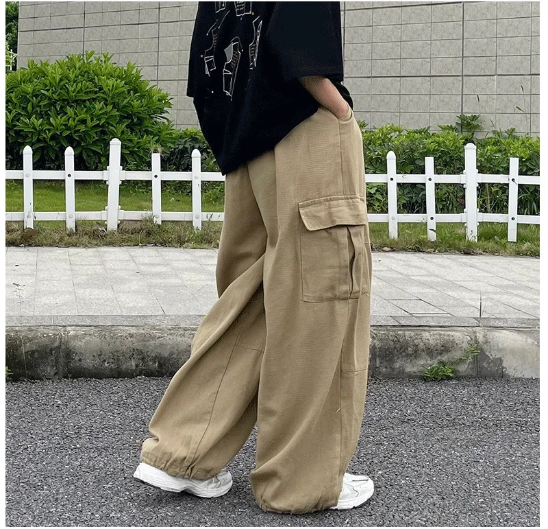 American Style Men’s Cargo Pants Loose Fit Wide Leg Casual Trousers Ins Style Hong Kong Fashion Straight Leg Harajuku Pants