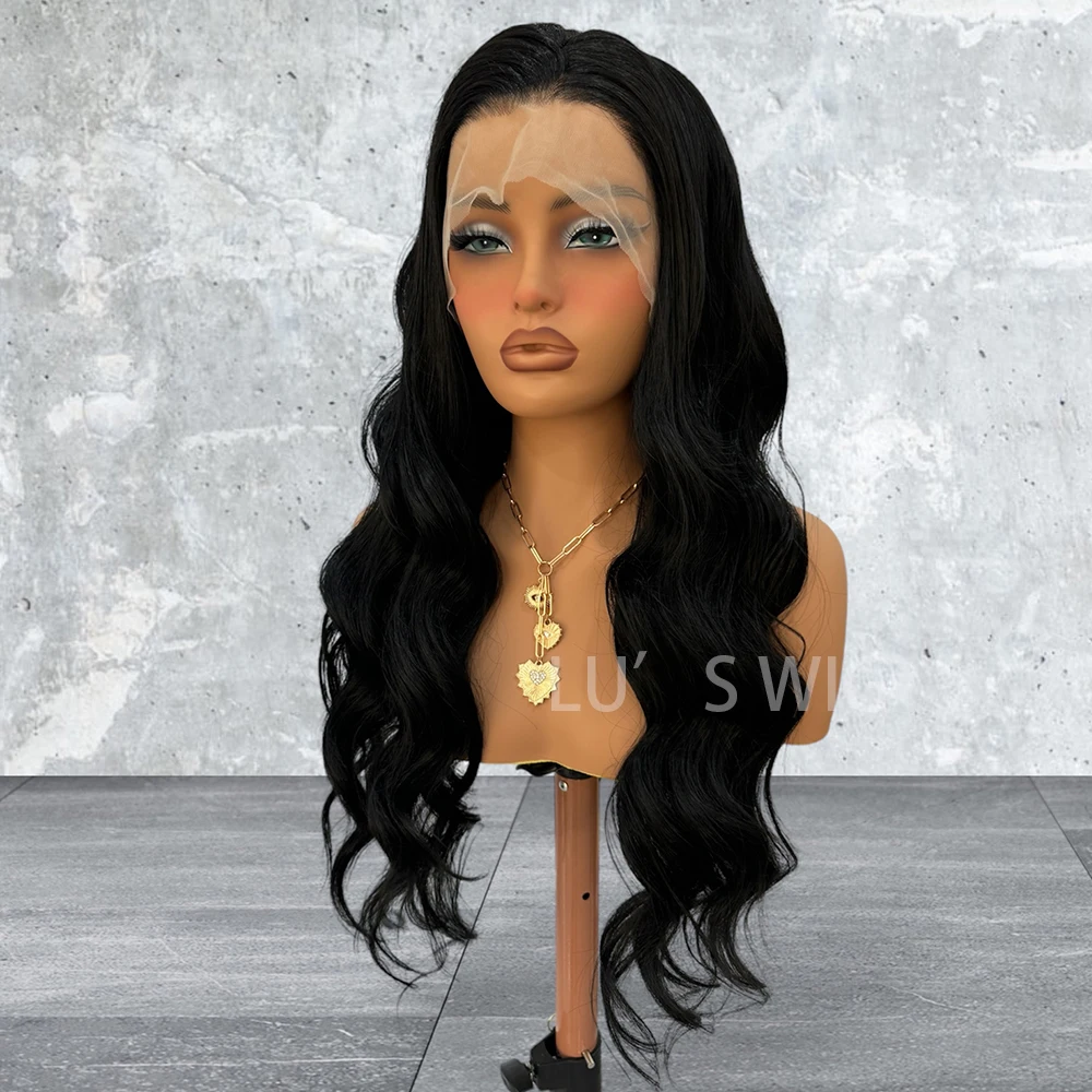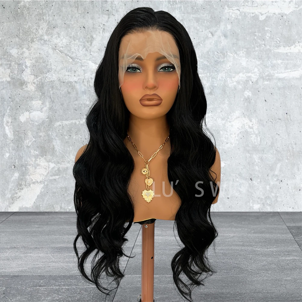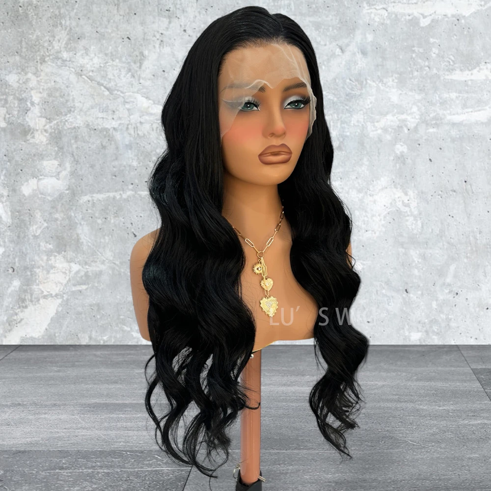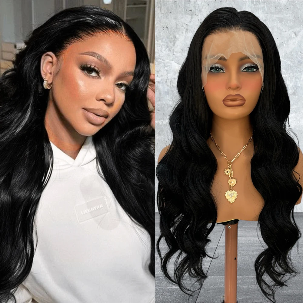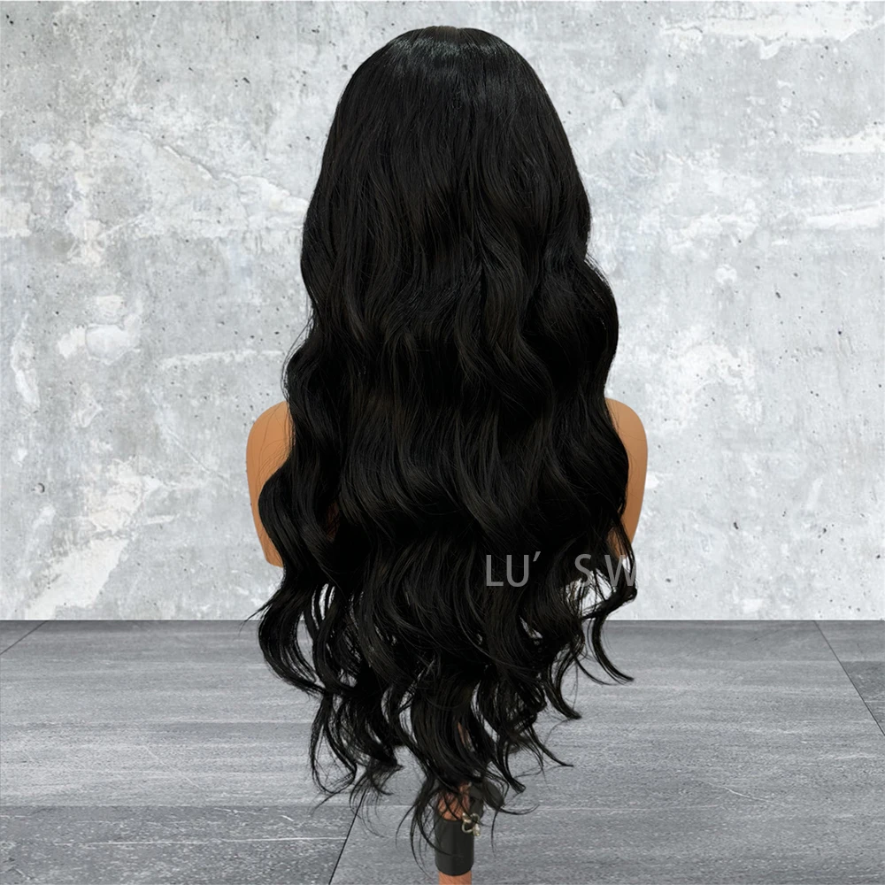 Black Deep Wave Synthetic Lace Wig Long Body Wave Wig Black Wig Ready to Wear Lace Front Wigs for Women Natural Hairline Cosplay