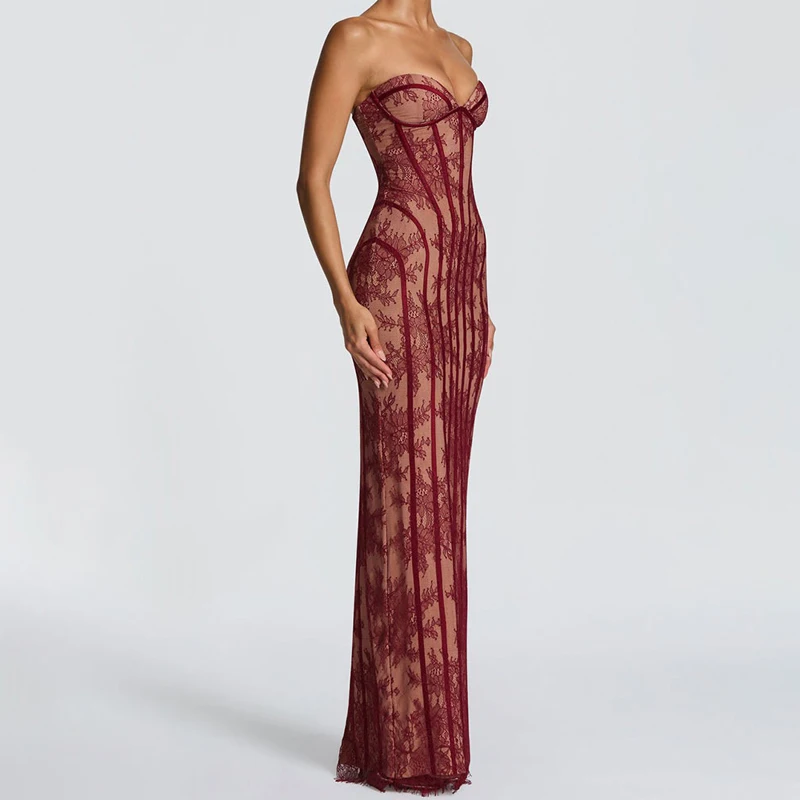 Chic Gauze Fishbone Strapless Dress Women Backless Off-shoulder Waist Cinching Slim Maxi Dresses 2026 Lady Evening Party Gowns