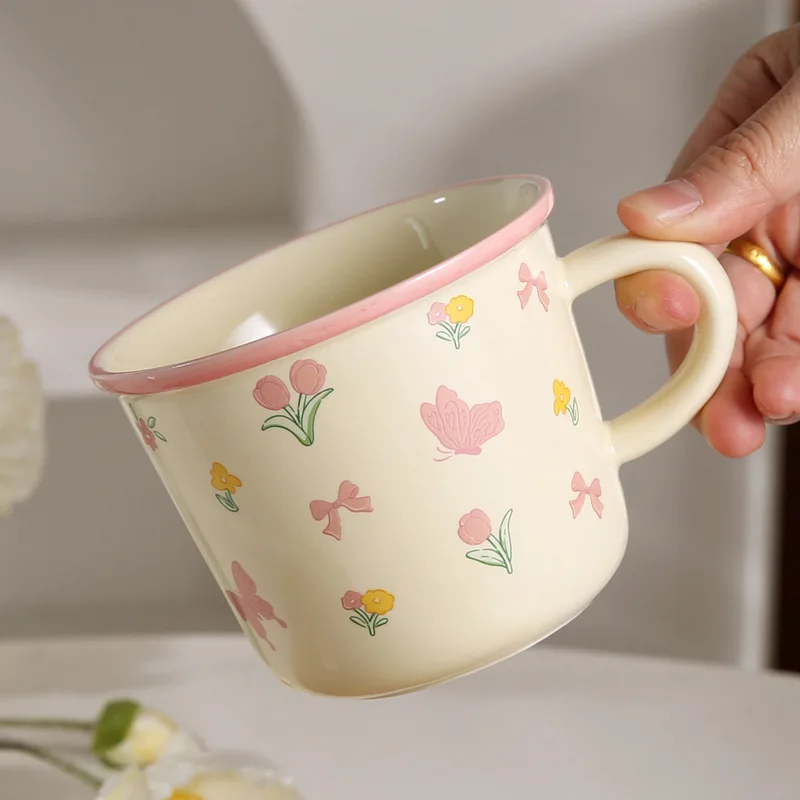 Creative Coffee Mug with Tulip Flower Design Ceramic Cup for Women Aesthetic Ins Style Breakfast Cup