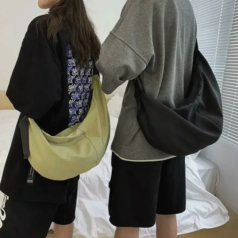 Crossbody Bags Men Solid Color Large Capacity Hobos Unisex Harajuku Japanese Style Nylon Waterproof Travel Shoulder Zipper Purse
