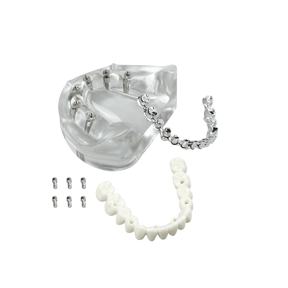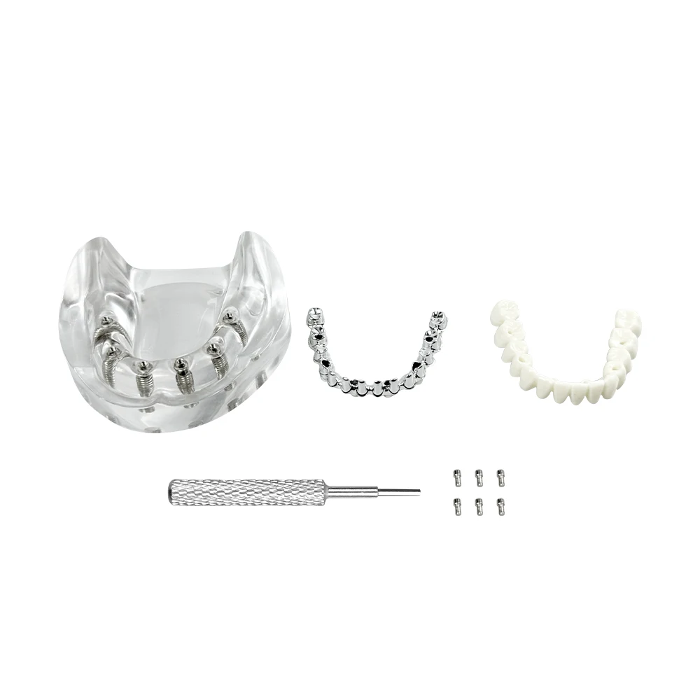 6Implants Teeth Model Restoration Removable Overdenture Silver Model for Researching Medical Dentist Students Learning Demo