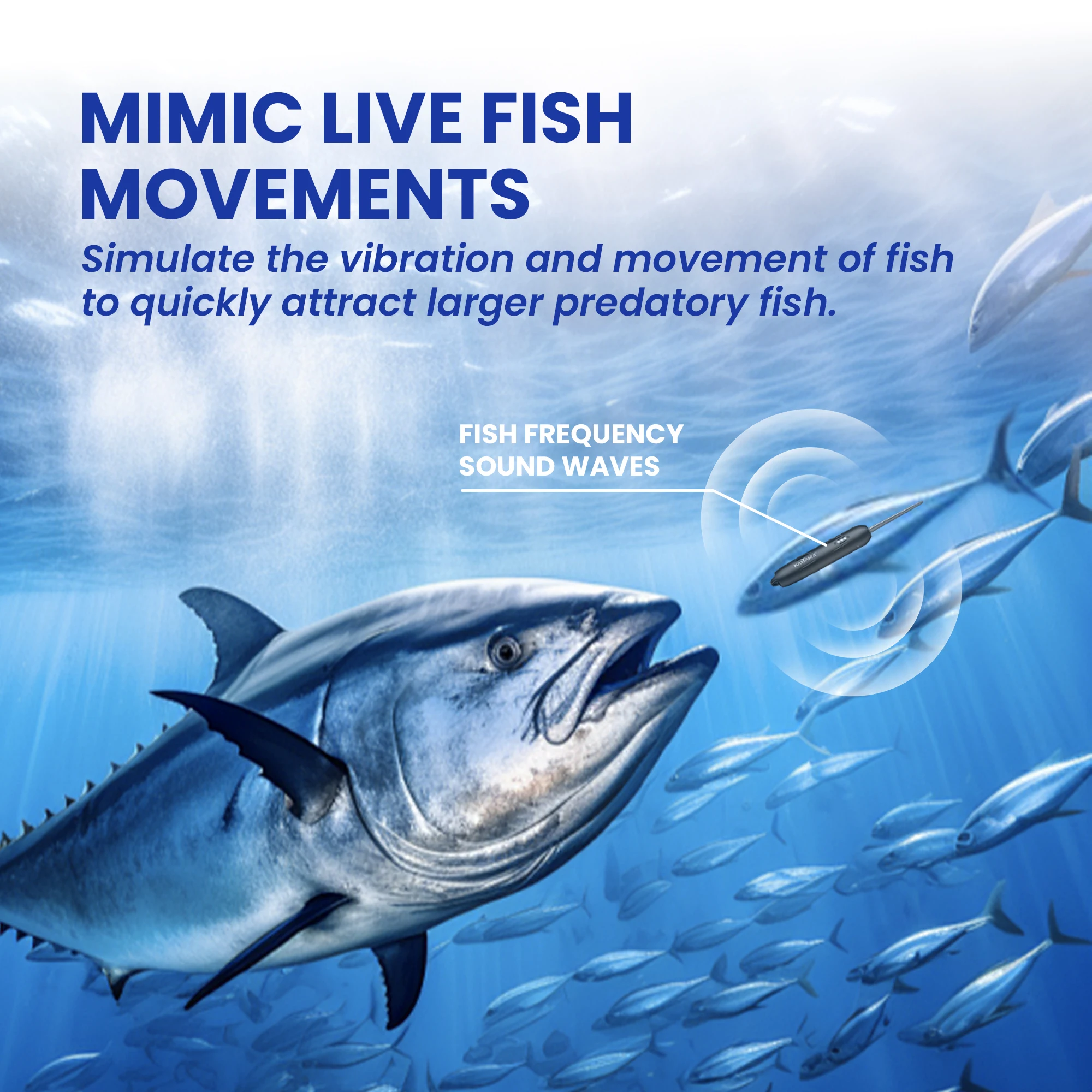 Built-in Sonic Generator: Emits specific sound wave frequencies that simulate natural prey, luring fish from the surrounding area to your bait.