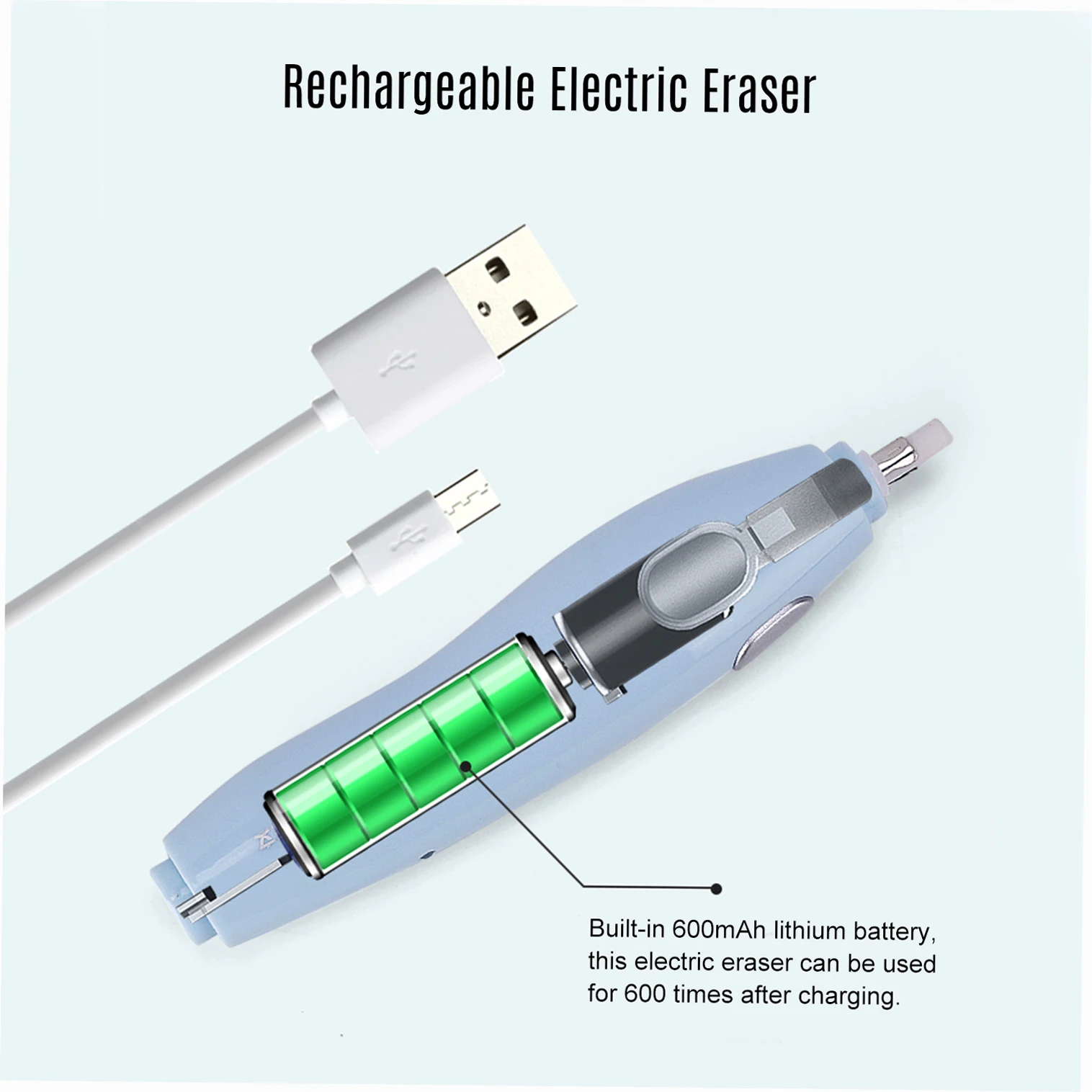 Electric Eraser Kit with 16 Eraser Refills Rechargeable Pencil Eraser One-button Control Christmas Gift Stationery Supplies