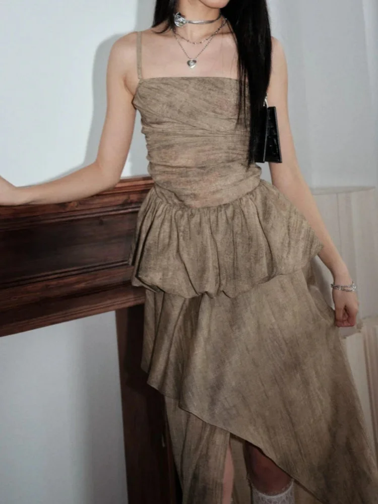 Be the first to review “Elegant Two Piece Set Vintage Draped Back Asymmetric Camisole Top and Flowy High Waist Long Skirt Suit”