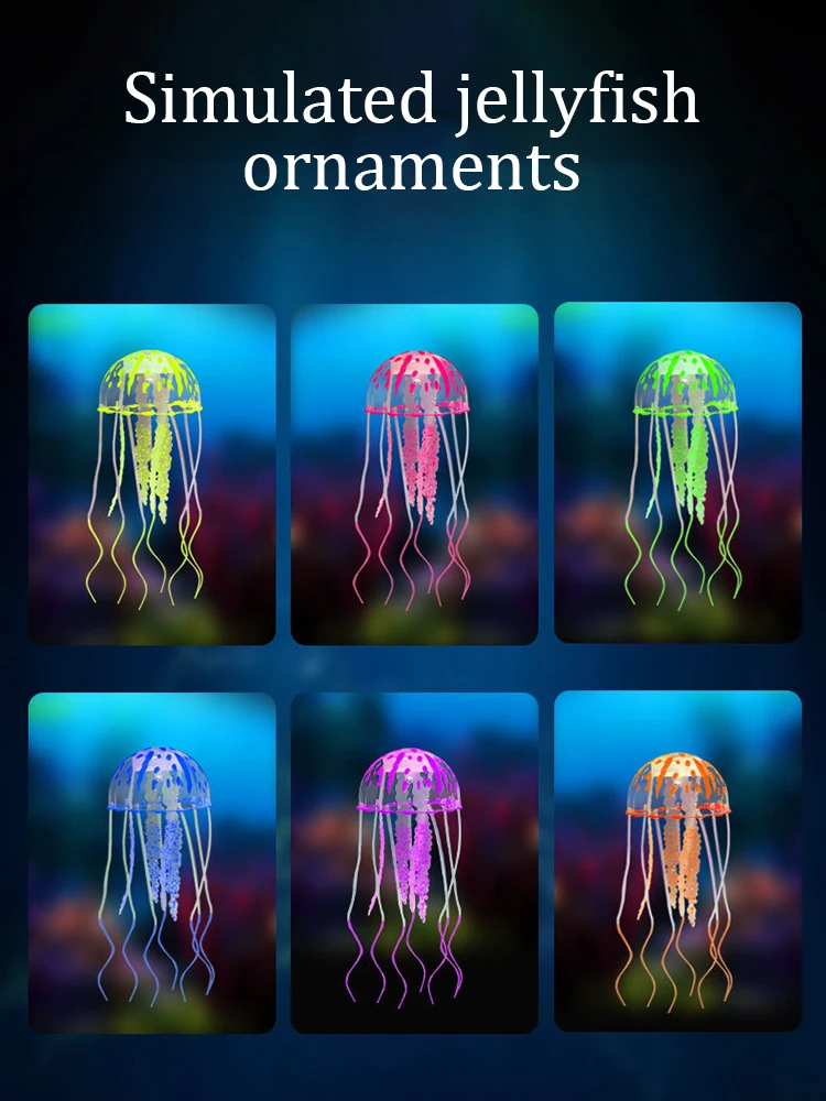 High simulation dynamic effect: Using silicone material to simulate the real shape of jellyfish, it will gently float with the water flow when placed in the water, and the tentacles will stretch naturally, restoring the agile posture of jellyfish swimming in the deep sea, giving the fish tank an instant vitality.