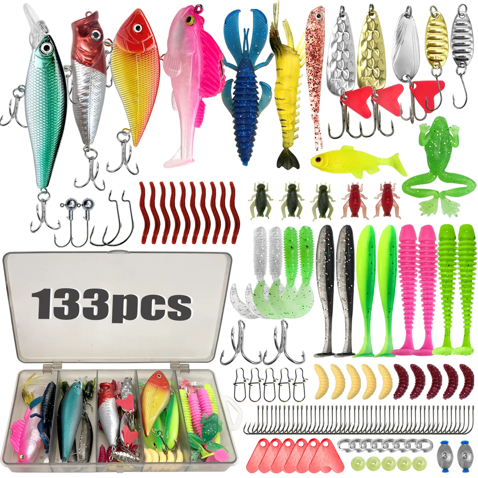 • Comprehensive Lure Kits: This series features 5 specialized configurations (83/133/193/239/409 pieces) containing soft baits, hard baits, metal spoons, and accessories, engineered for both freshwater and saltwater environments. Ideal for beginners to tournament anglers.