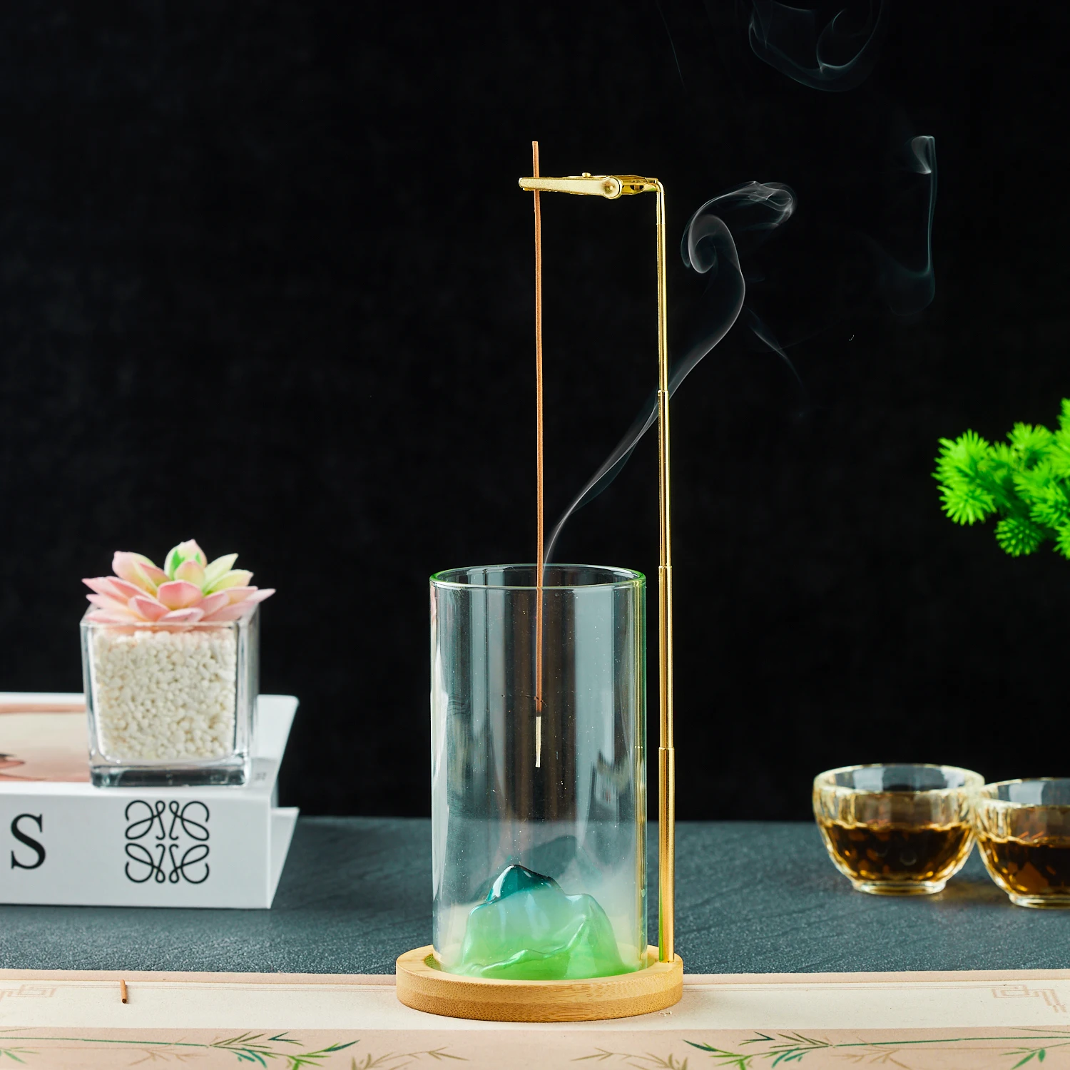 Glass Mountain Incense Holder Height-adjustable Incense Stick Holder Anti-Ash Incense Burner for Yoga Meditation SPA Home Decor