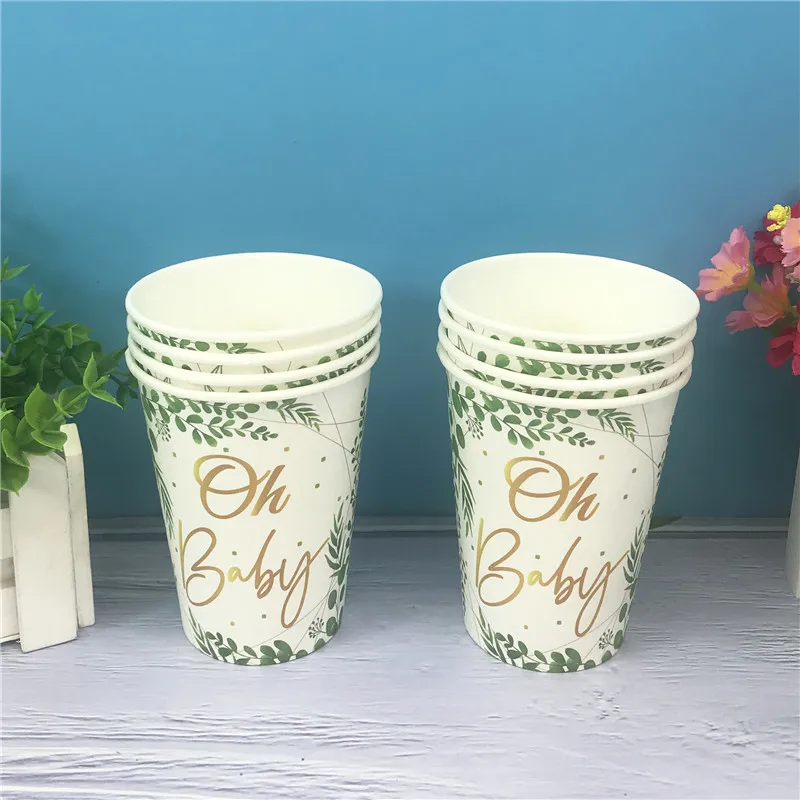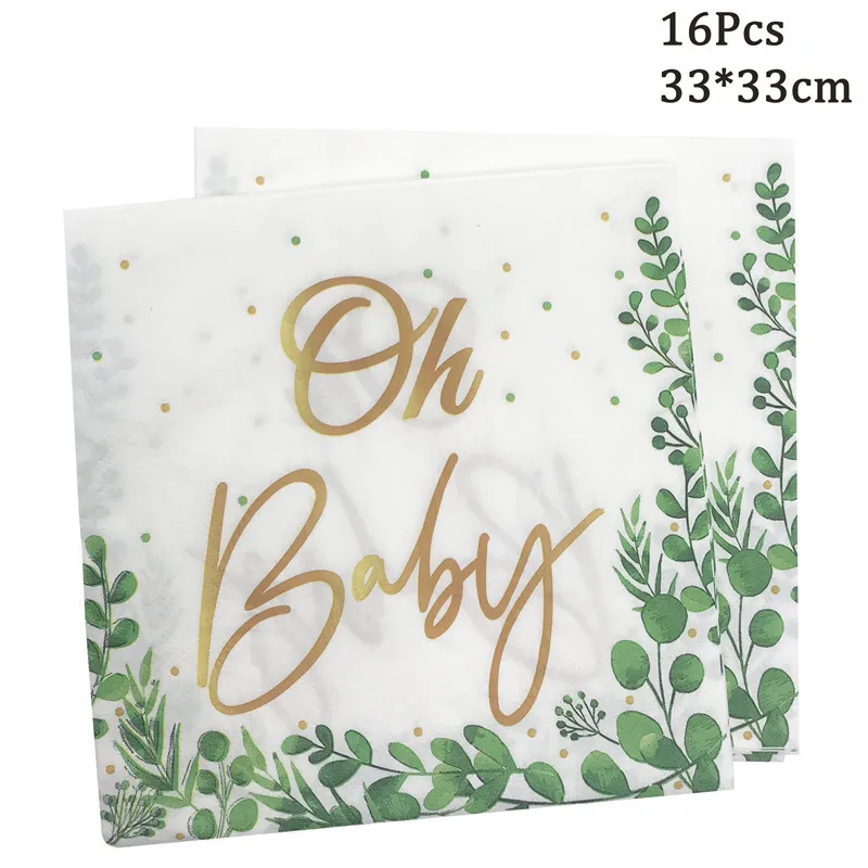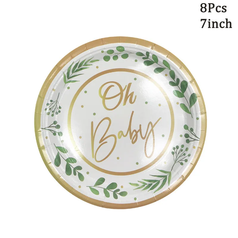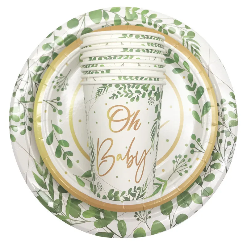 Product Description:Green Leaf Oh Baby Disposable Paper Plates Cups Napkins Baby Shower Party Decor Boy Girl Birthday Gender Reveal Party Supplies