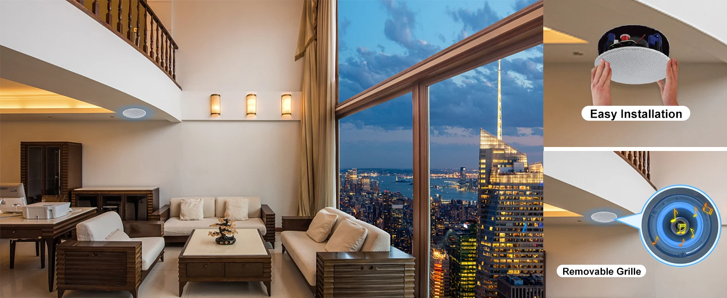 Easy to Install: the front grille is held up by magnets which holds it securely in place, but at the same time it’s easy to remove without bending it. The large mounting clamp with non-slip tread grips ceilings or walls firmly for sure installation.No need for expensive professional installation. It is an easy upgrade to bring better sound into you existing home theater set up. for in home use, office, professional, or custom audio applications on any flat surface