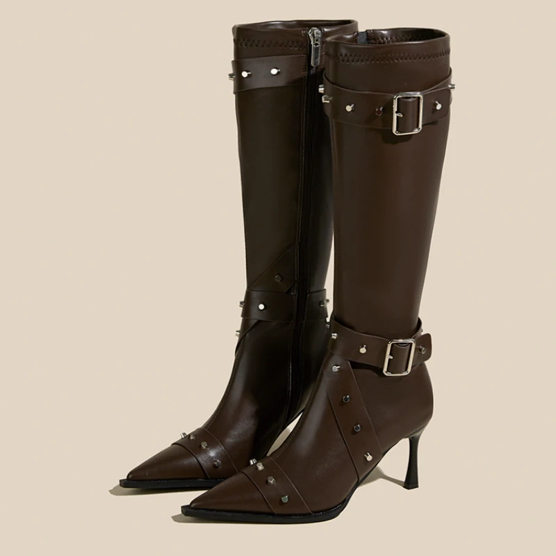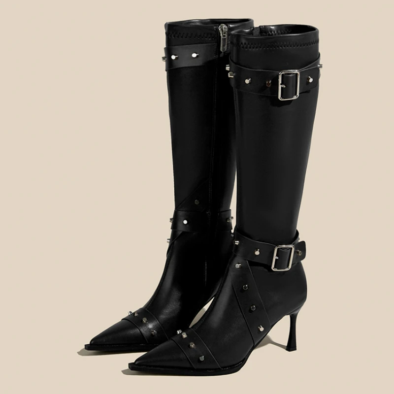 High-heeled Women Boots Pointed Toe Long Boots for Women Sexy Punk Gothic Boots Paris European and American Female Party Boots